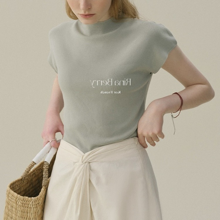 冰丝豆绿色短上衣显瘦短袖针织圆领T恤女薄款