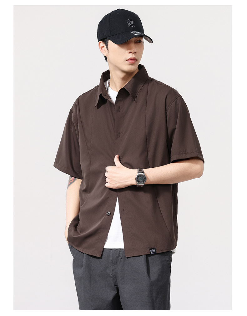 轻薄透气短袖衬衫男夏季新款垂感宽松高级感痞帅衬衣男装寸衫