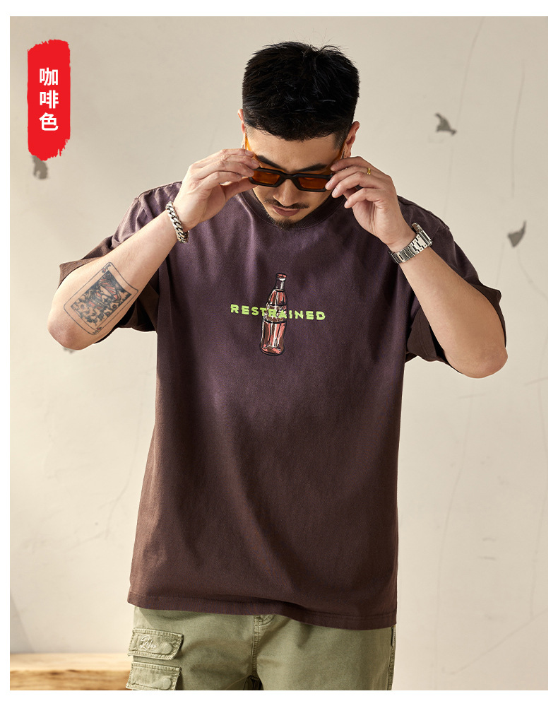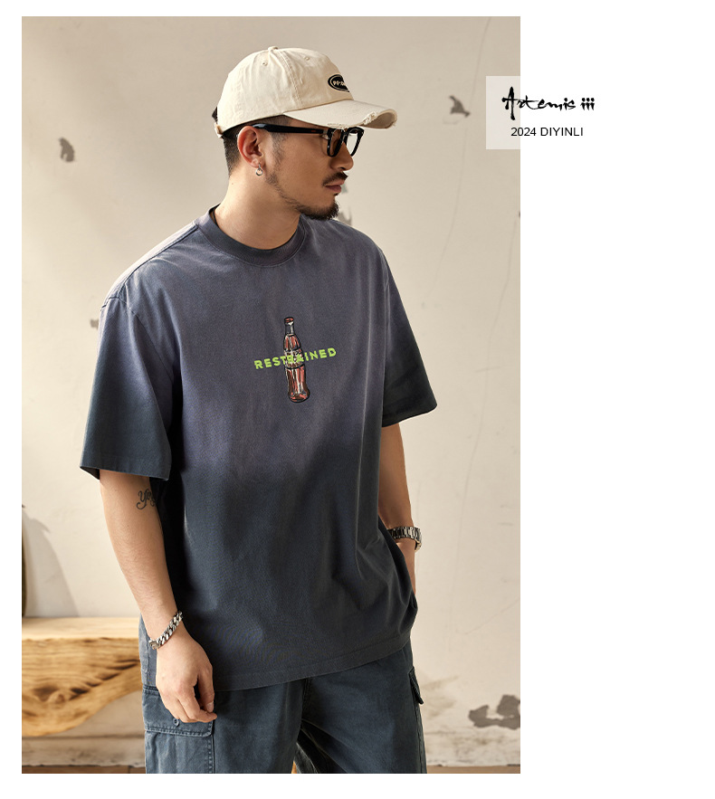 高端水洗渐变重磅短袖t恤男士夏季新款潮牌宽松大码美式男款体恤