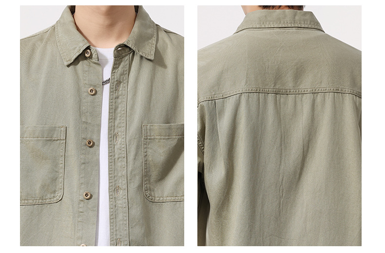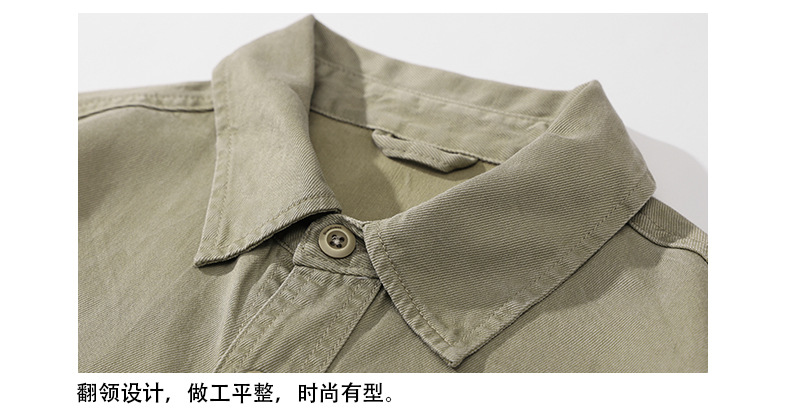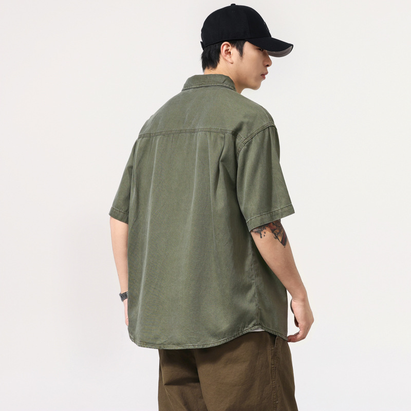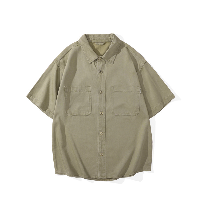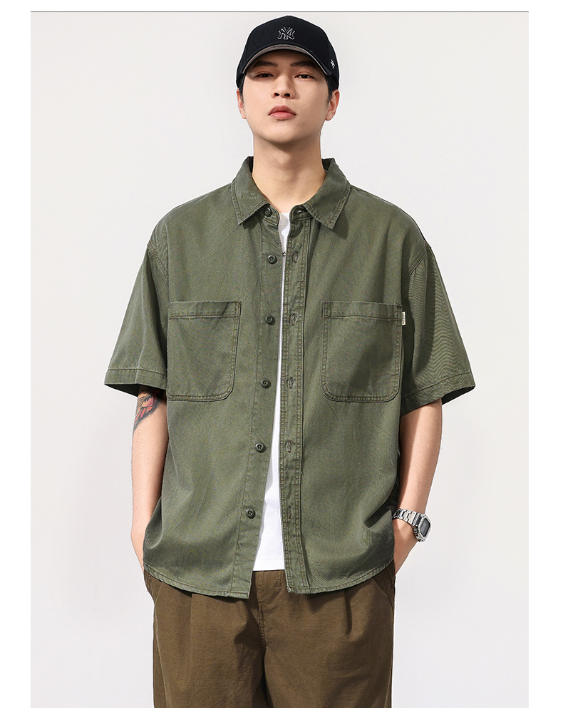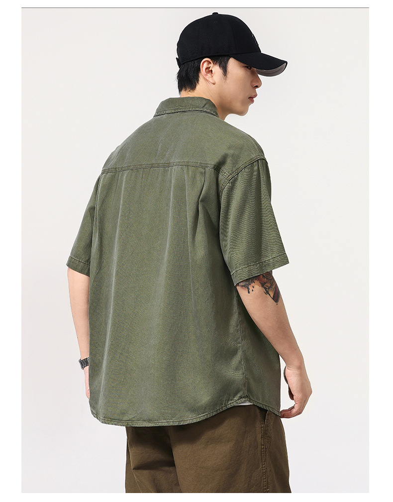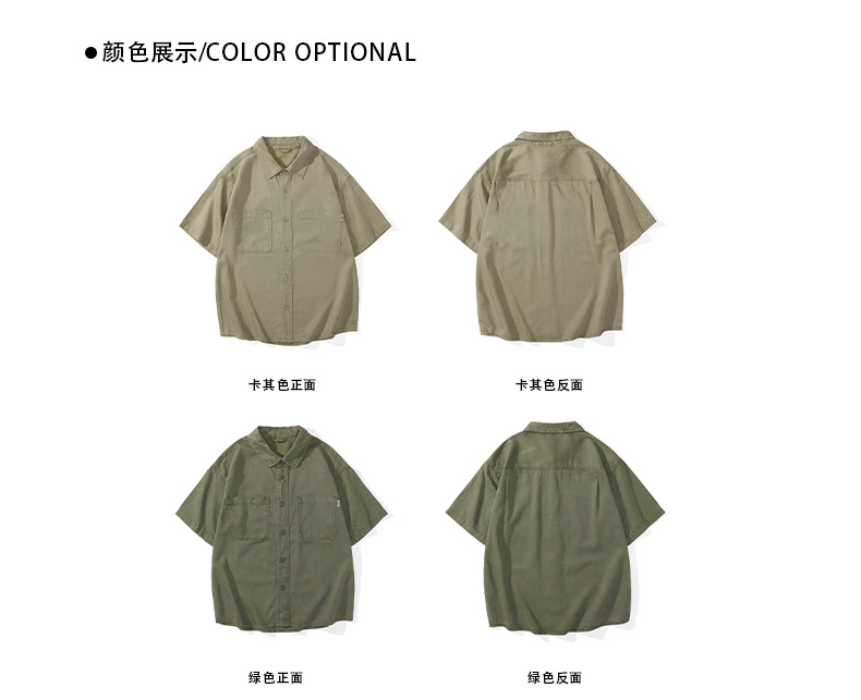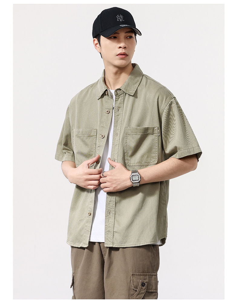 夏季新款美式复古水洗短袖衬衫男士上衣宽松休闲T恤开衫衬衣