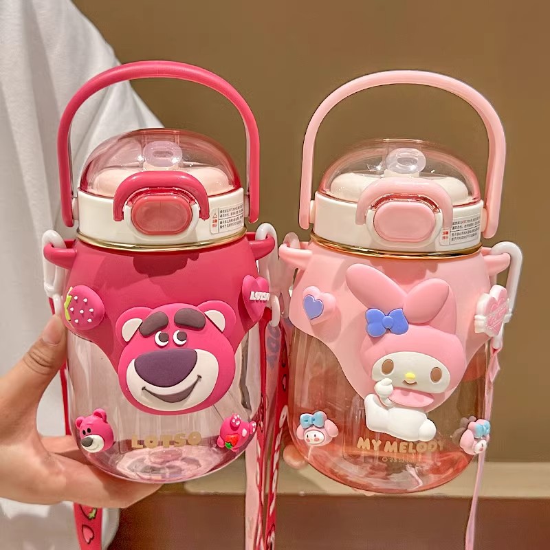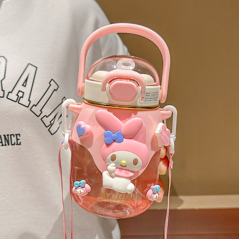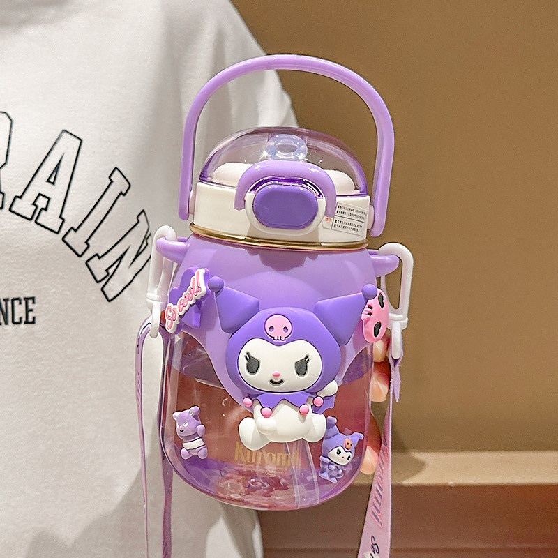 便携卡通酷洛米儿童塑料水壶高颜值女生户外喝水大肚吸管可爱杯子