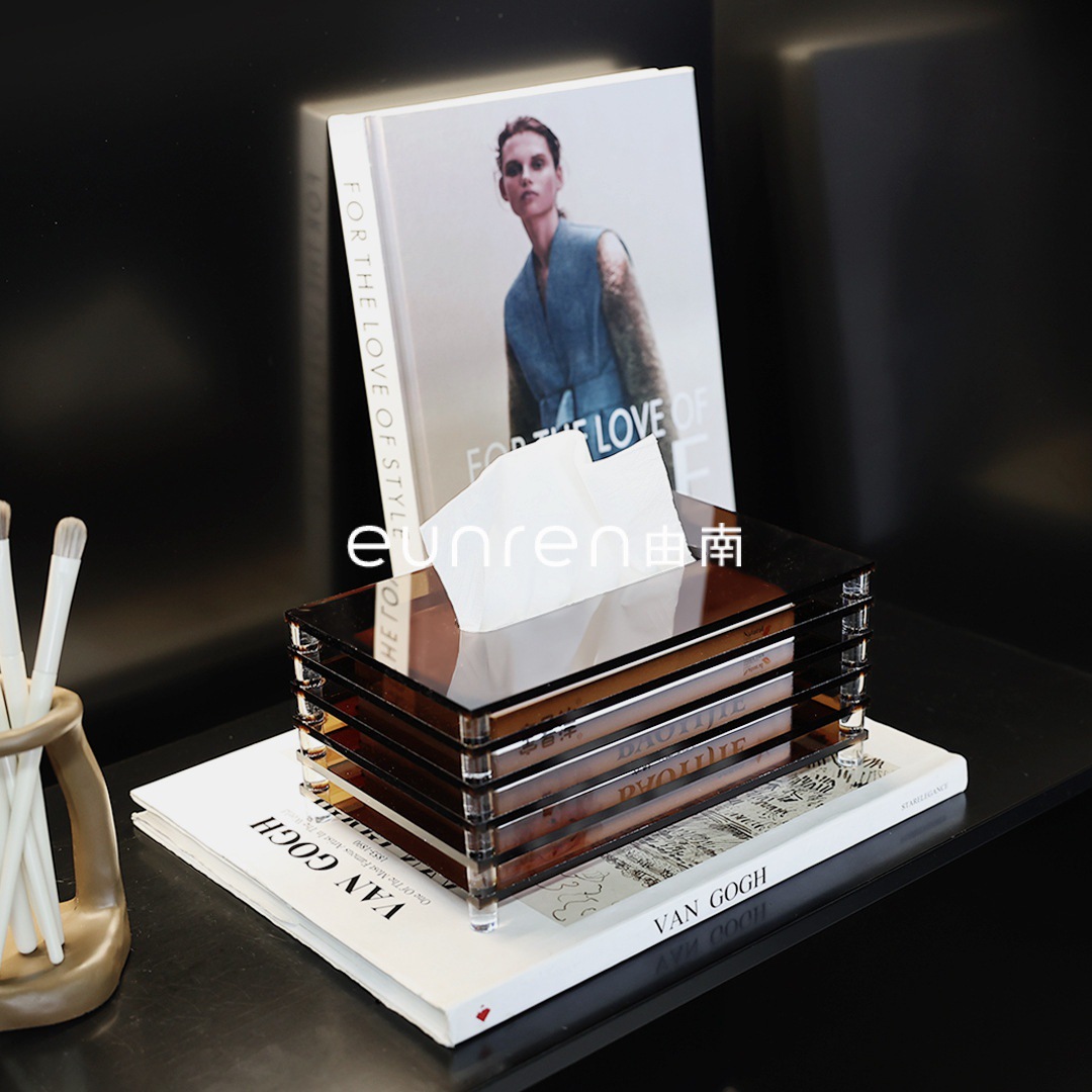 简约现代高档亚克力纸巾盒家用摆件茶几纸巾创意收纳抽纸盒软装饰