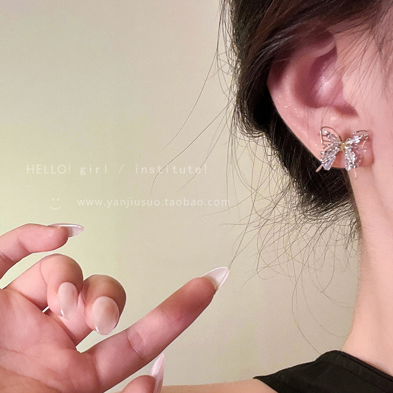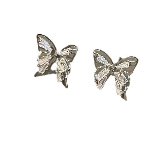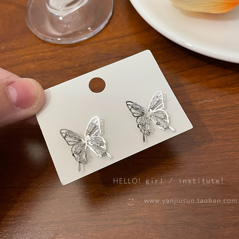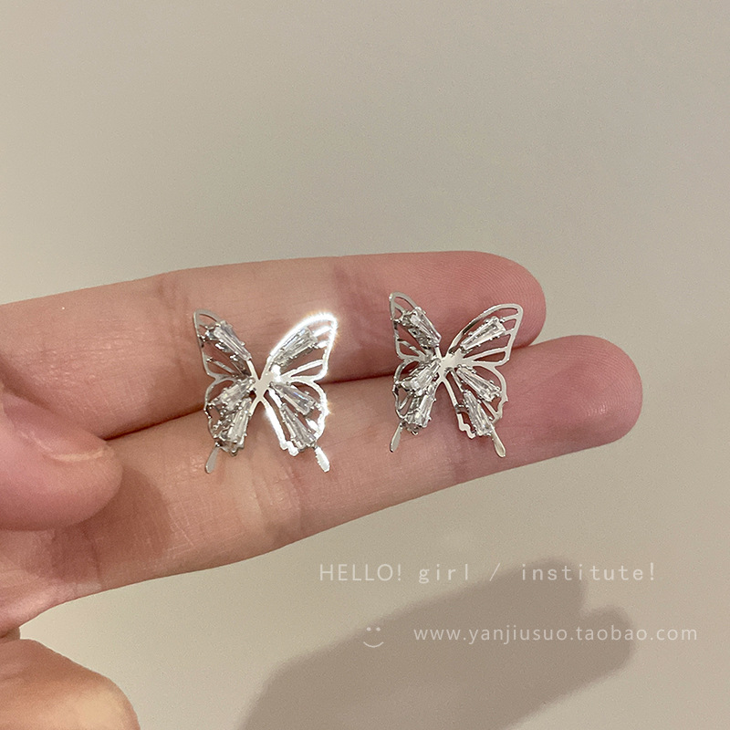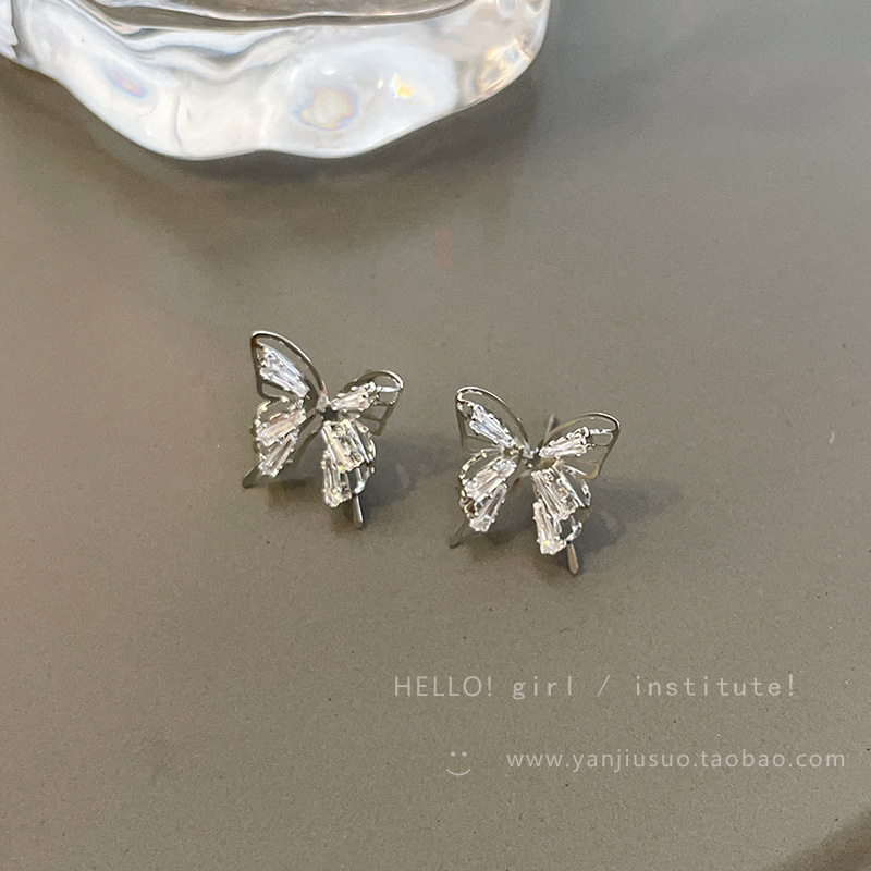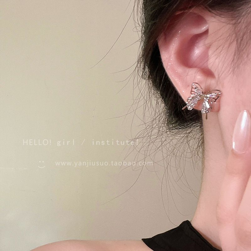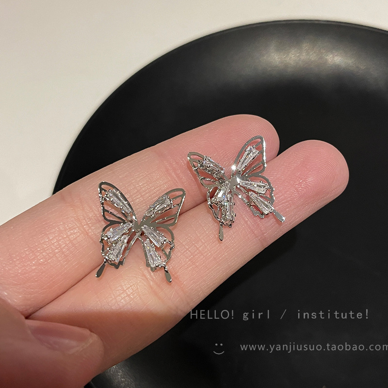 精致锆石蝴蝶耳钉女新款爆款小众耳环高级感轻奢夸张气质耳饰