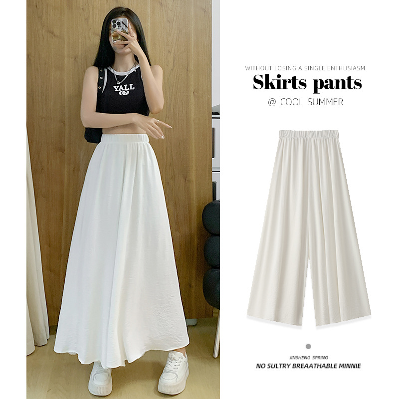 白色裙裤女春小个子飘飘百褶a字半身裙夏天森系高腰垂感阔腿裤