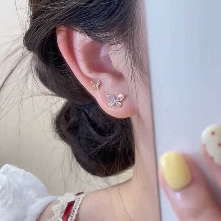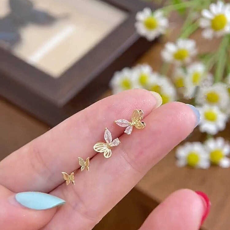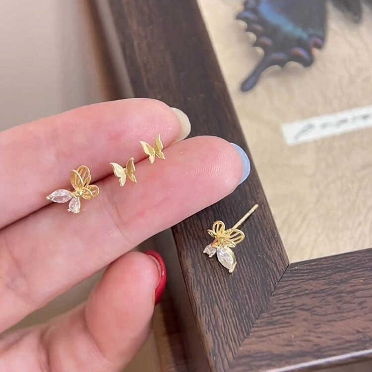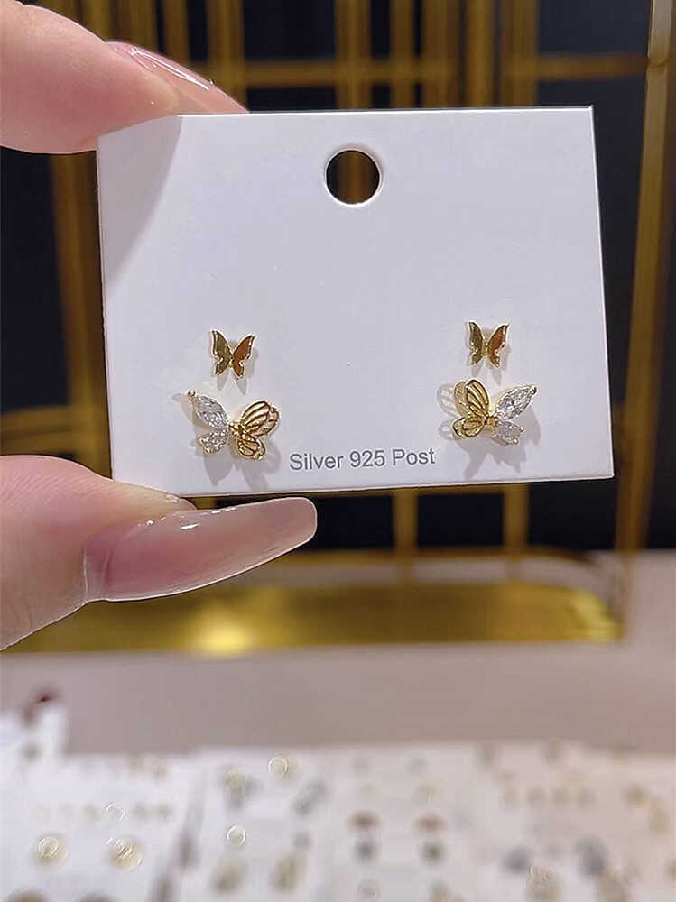 金色立体镂空蝴蝶耳钉四件套轻奢小众高级感银针耳饰精致百搭耳环