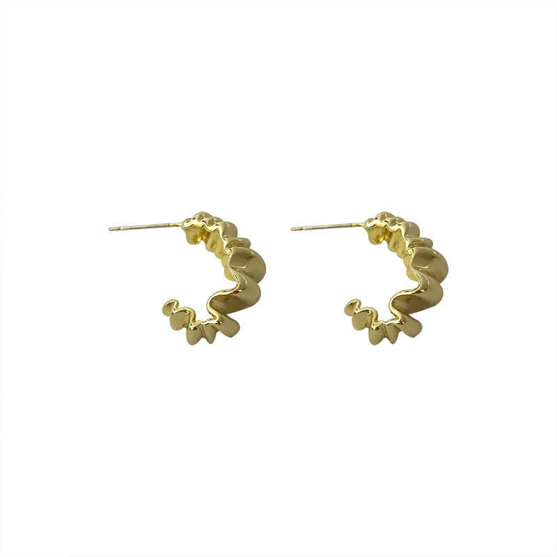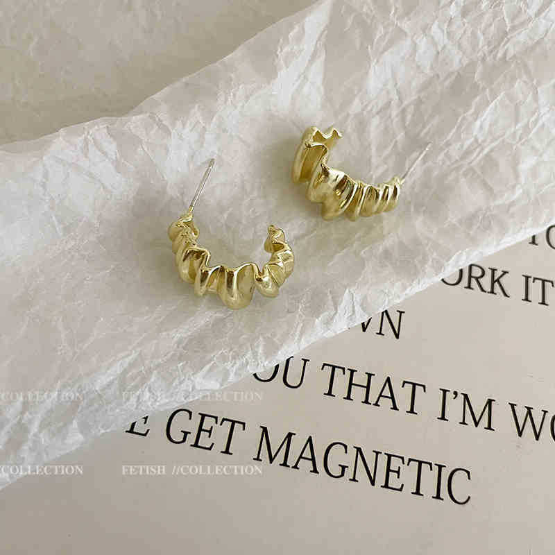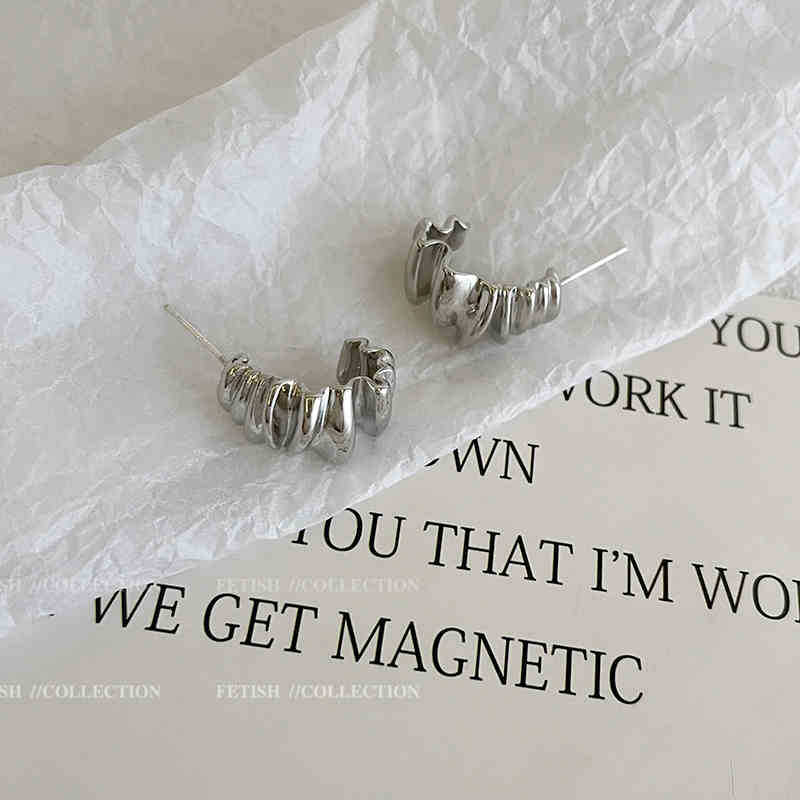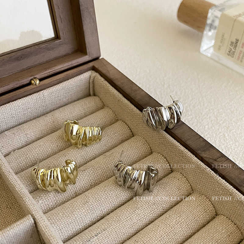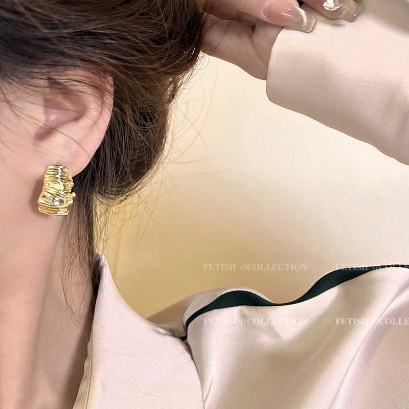欧美大牌金属质感褶皱耳环女独特设计感小众高级气质时髦耳钉耳饰