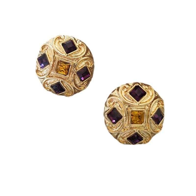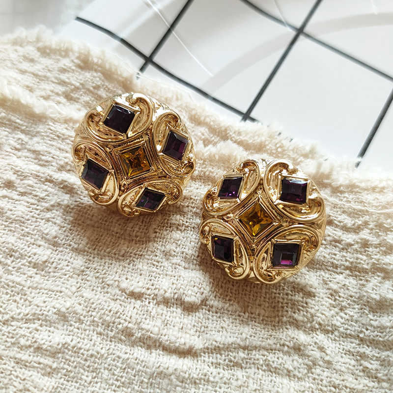 中式复古Vintage耳饰巴洛克风格紫色琉璃圆形耳钉气质百搭993