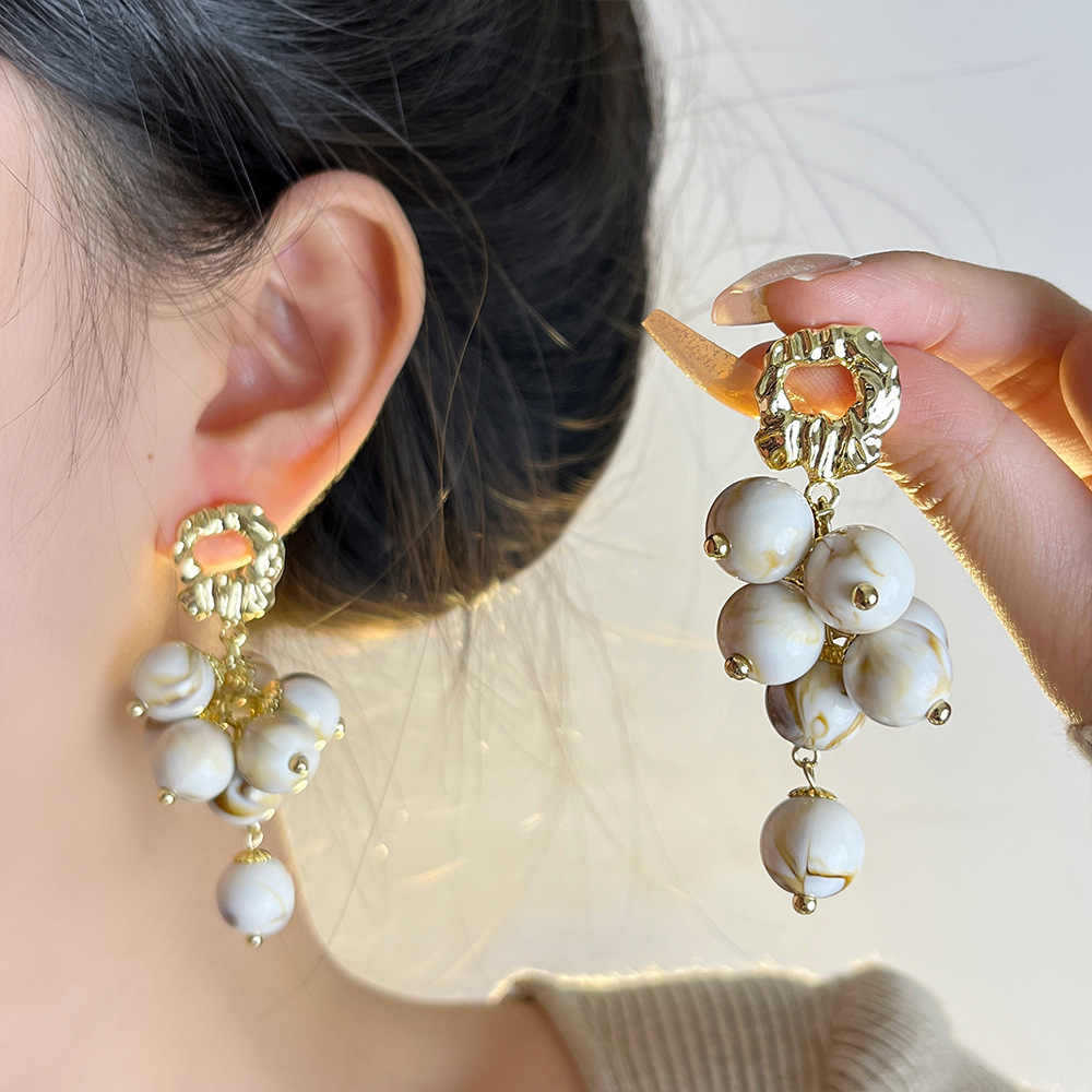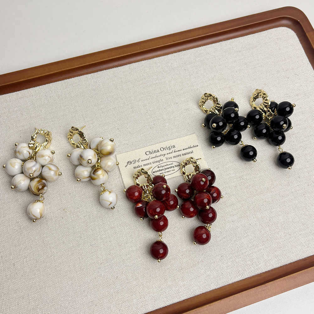 法式复古红樱桃流苏耳环女小众个性设计感串珠耳钉气质高级感耳饰