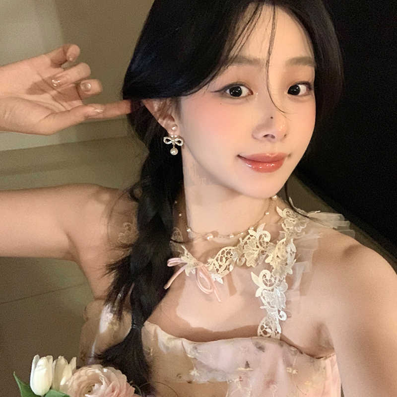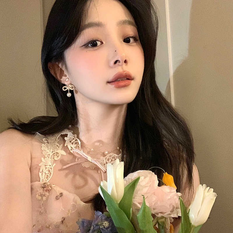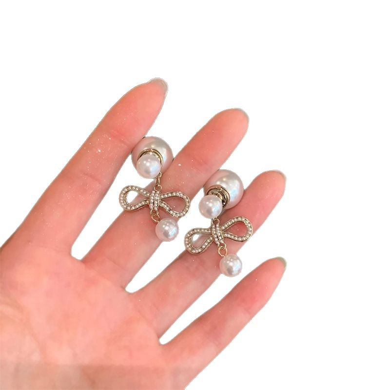 韦雪同款~镶锆蝴蝶结双面CD珍珠耳环轻奢气质耳饰女耳钉2025新款