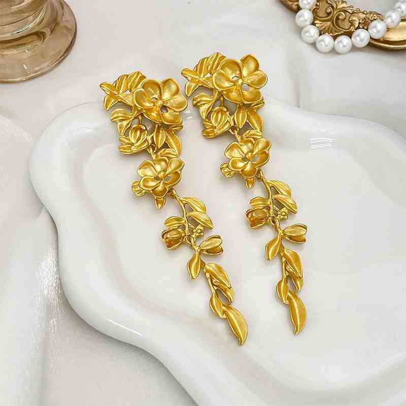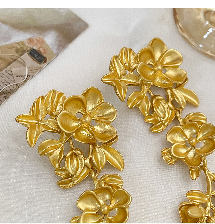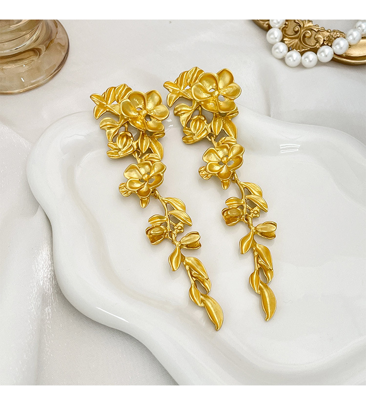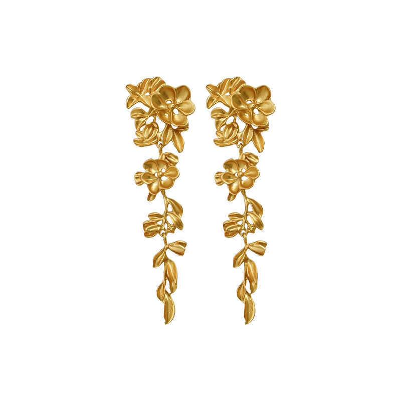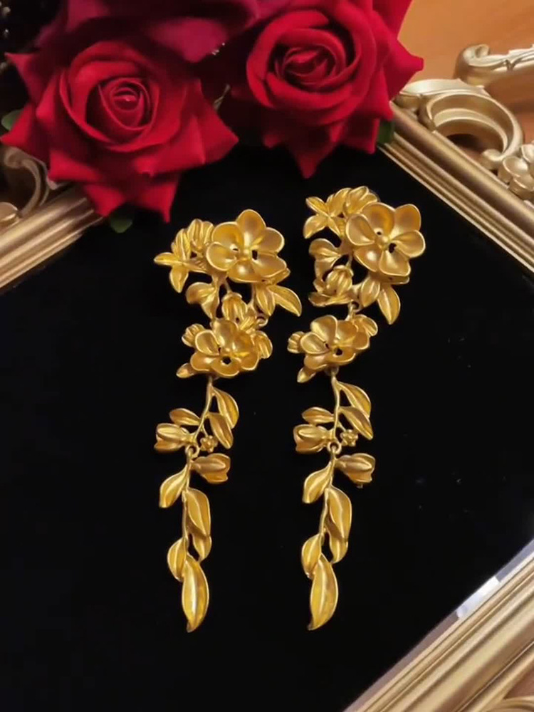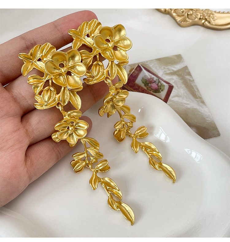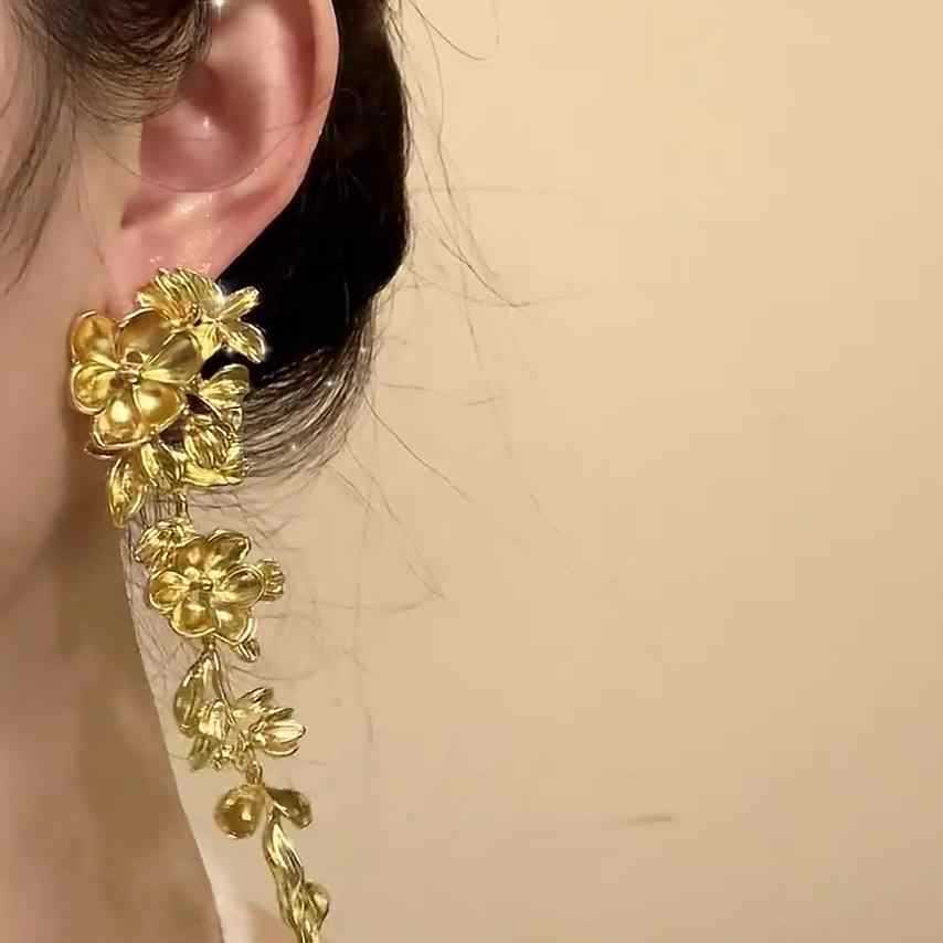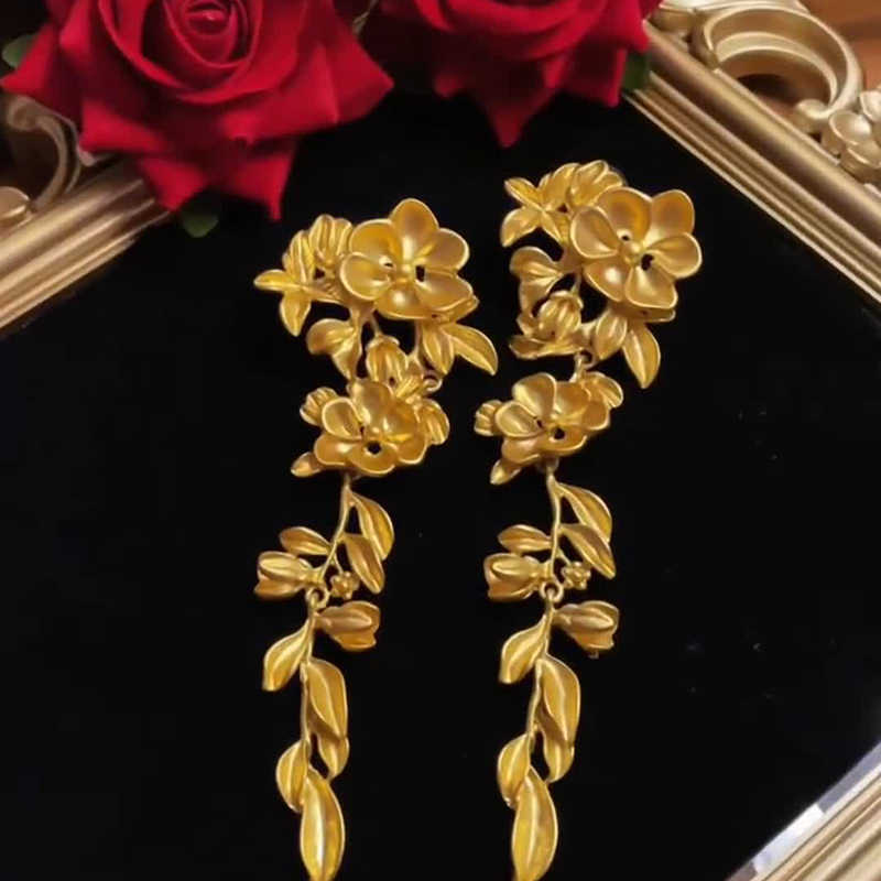 法式金色花朵流苏耳环夸张复古高级感气质方圆脸宴会耳坠中古耳饰