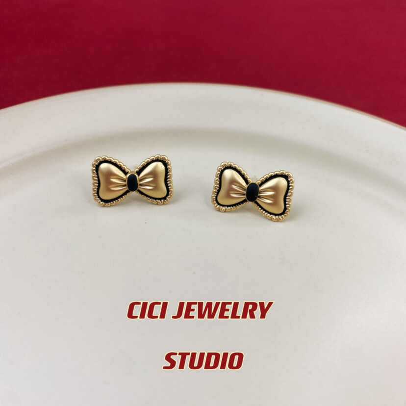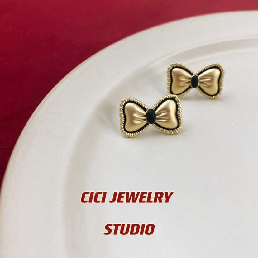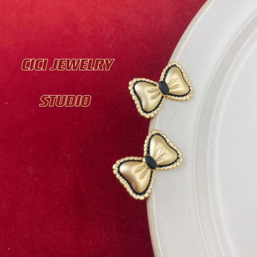 金色蝴蝶结耳钉高级感轻奢小众耳饰925银针耳环女时尚甜美饰品