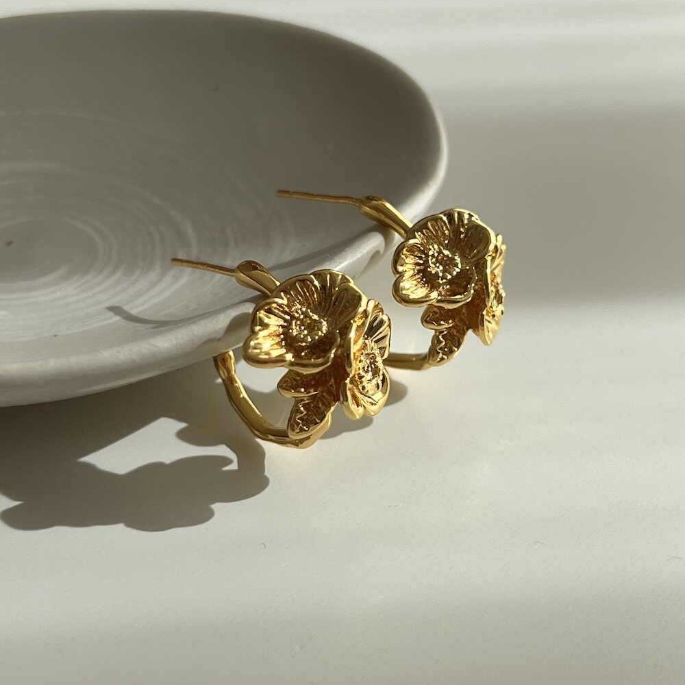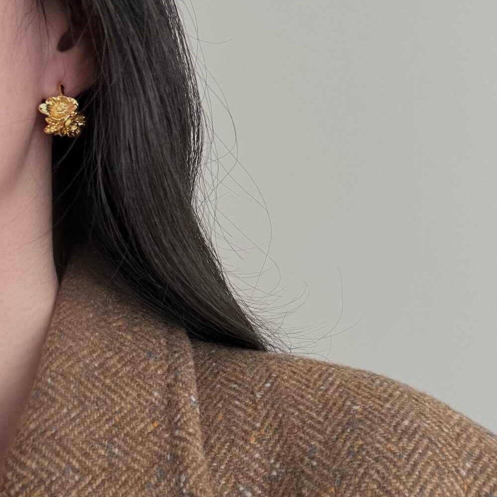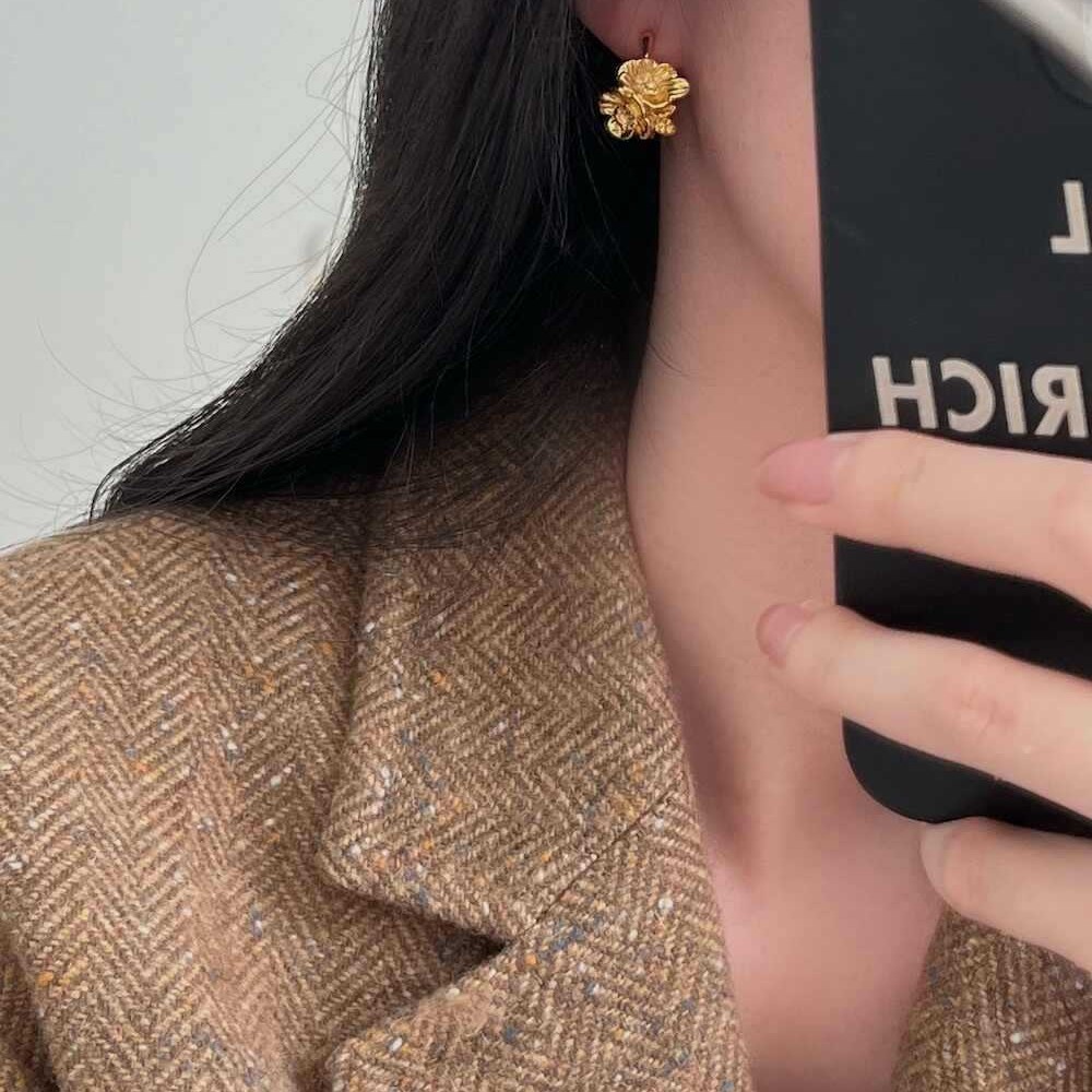 花团锦簇925银针早秋新款时尚复古法式超仙花朵造型网红耳圈耳环