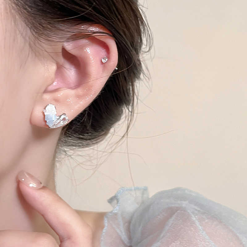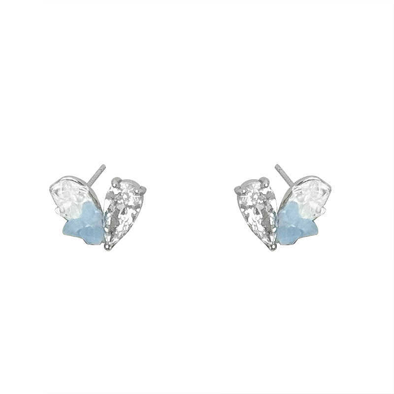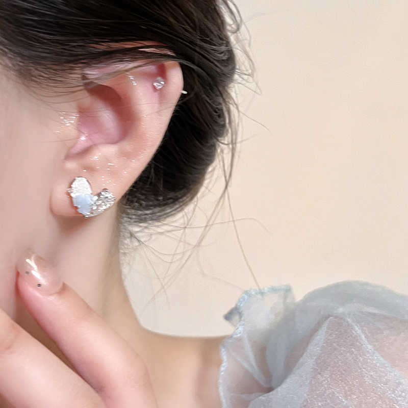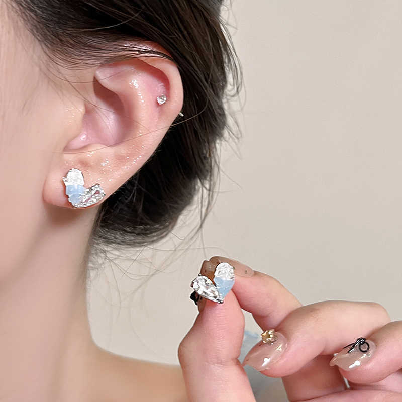夏日冰透蓝水晶爱心银针耳钉女轻奢高级感气质耳环清冷感精致耳饰
