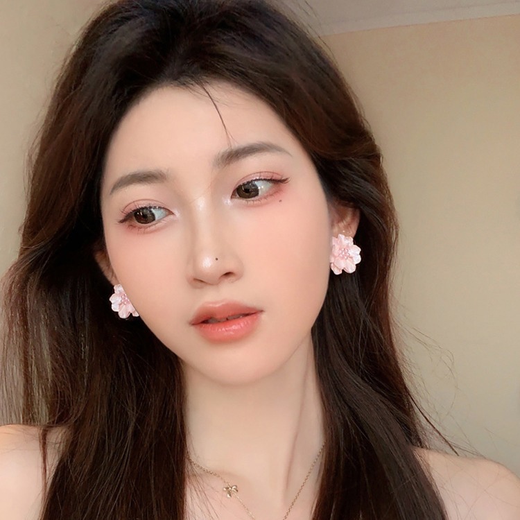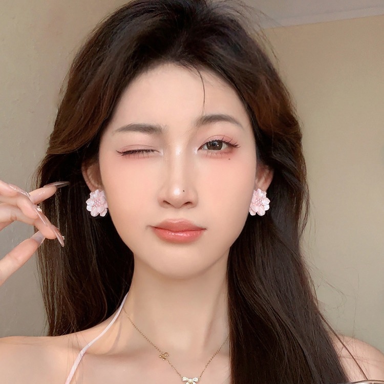 粉色桃花花朵耳钉年新款爆款适合春天的耳环女小众设计感耳饰
