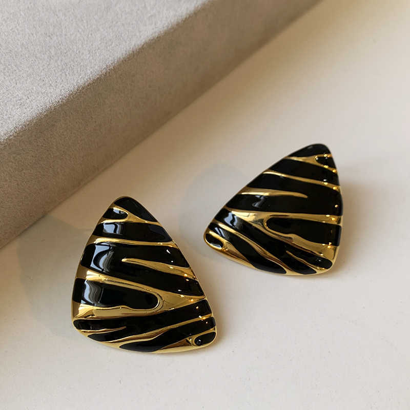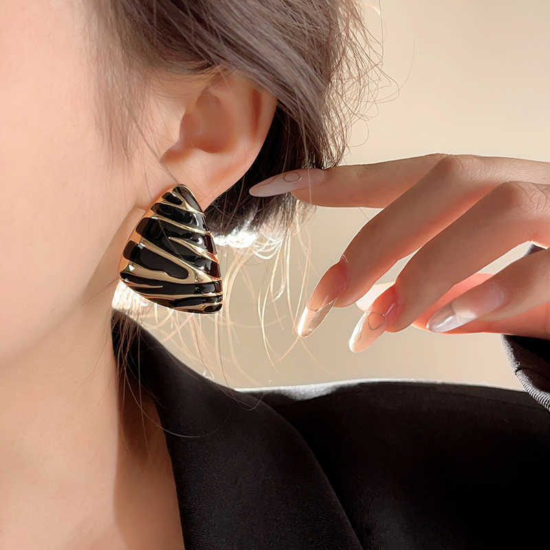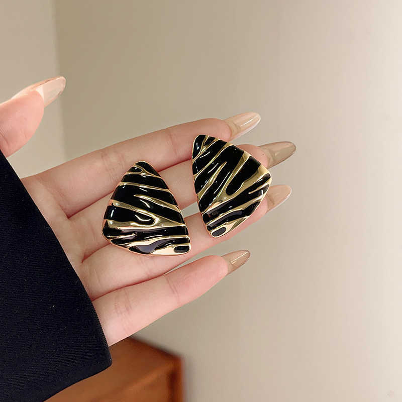 黑金斑马纹复古耳钉女轻奢高级感夸张大耳环新款爆款独特耳饰