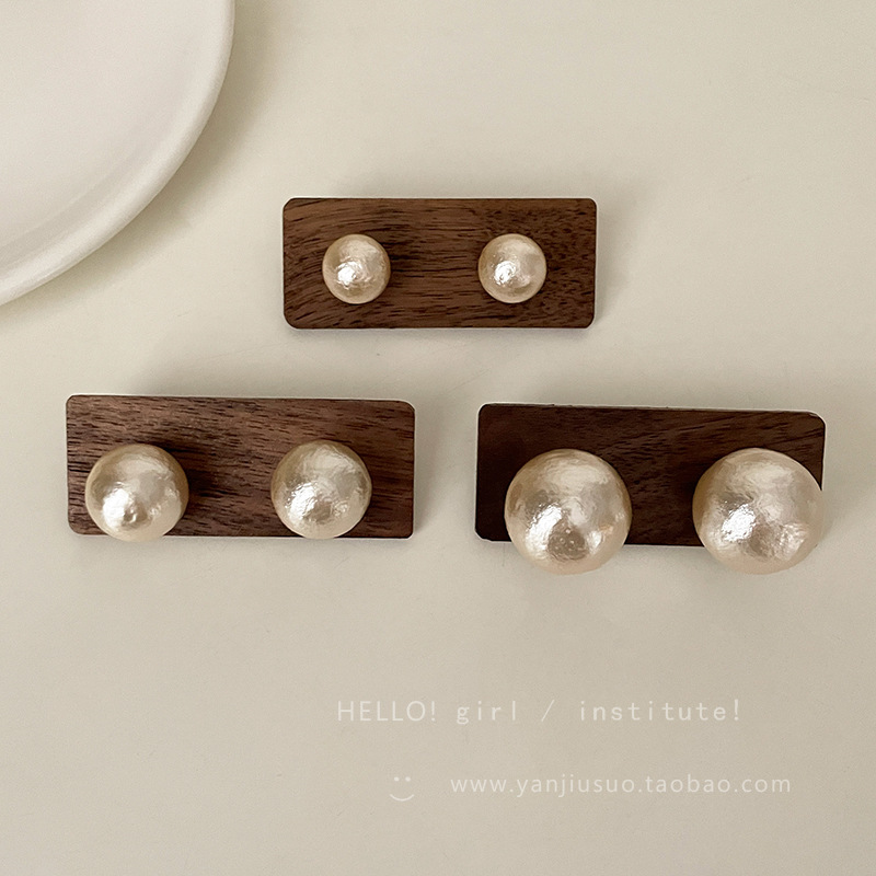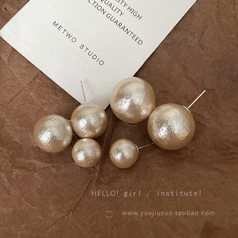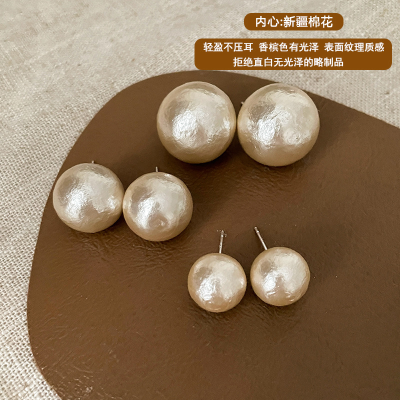 棉花珍珠耳钉女秋冬复古独特耳环新款爆款轻奢高级感气质耳饰