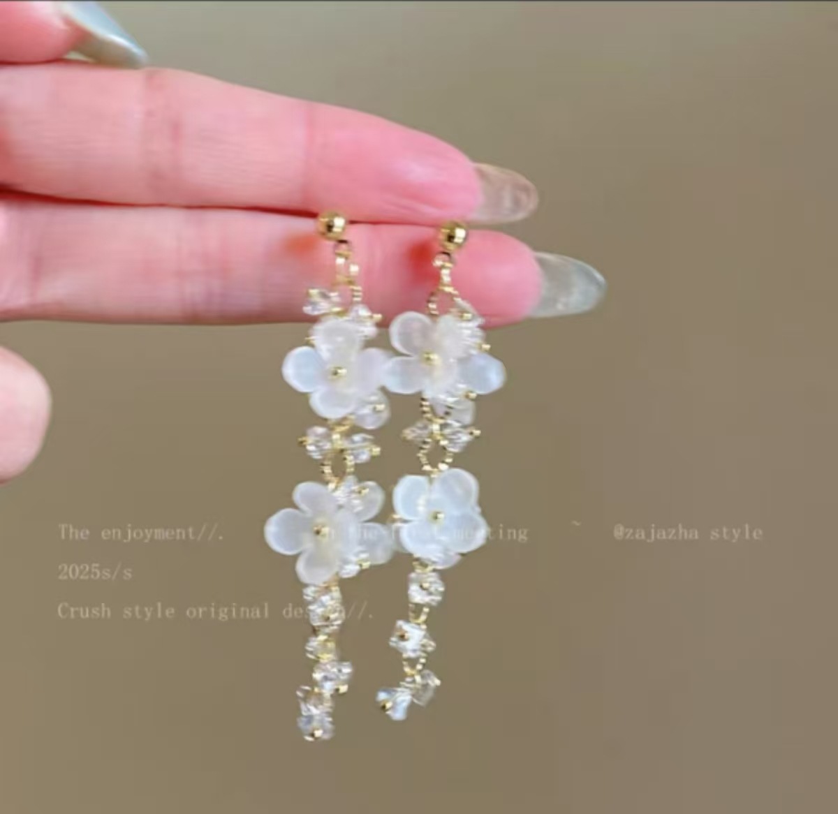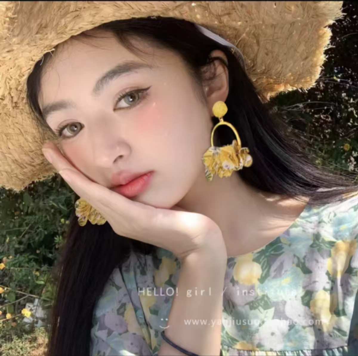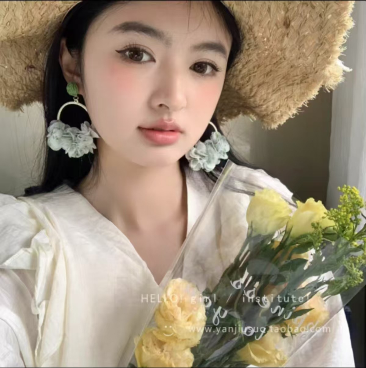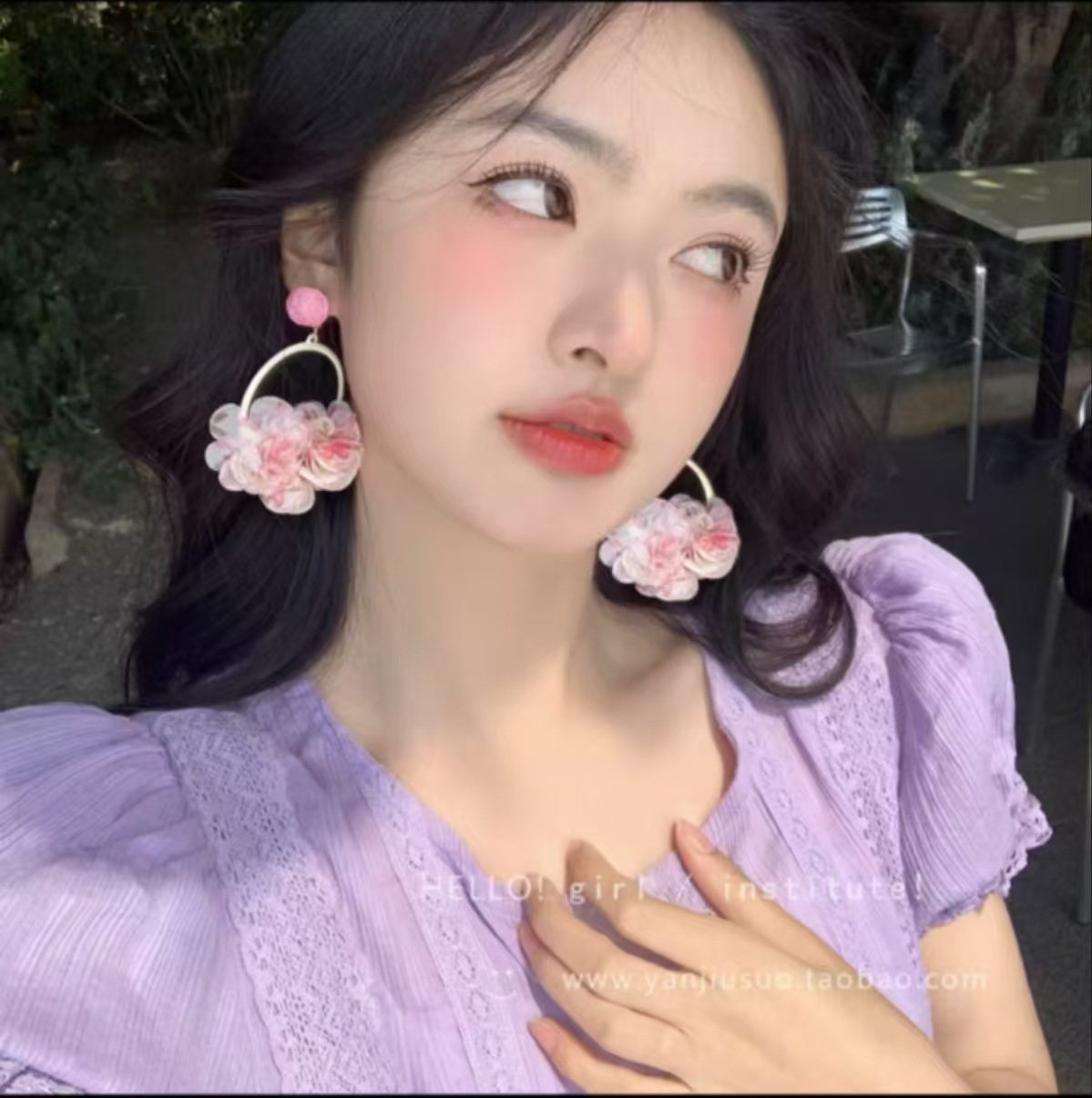 度假风花朵耳坠女2025爆款耳环高级感气质耳钉超仙风小众法式耳饰