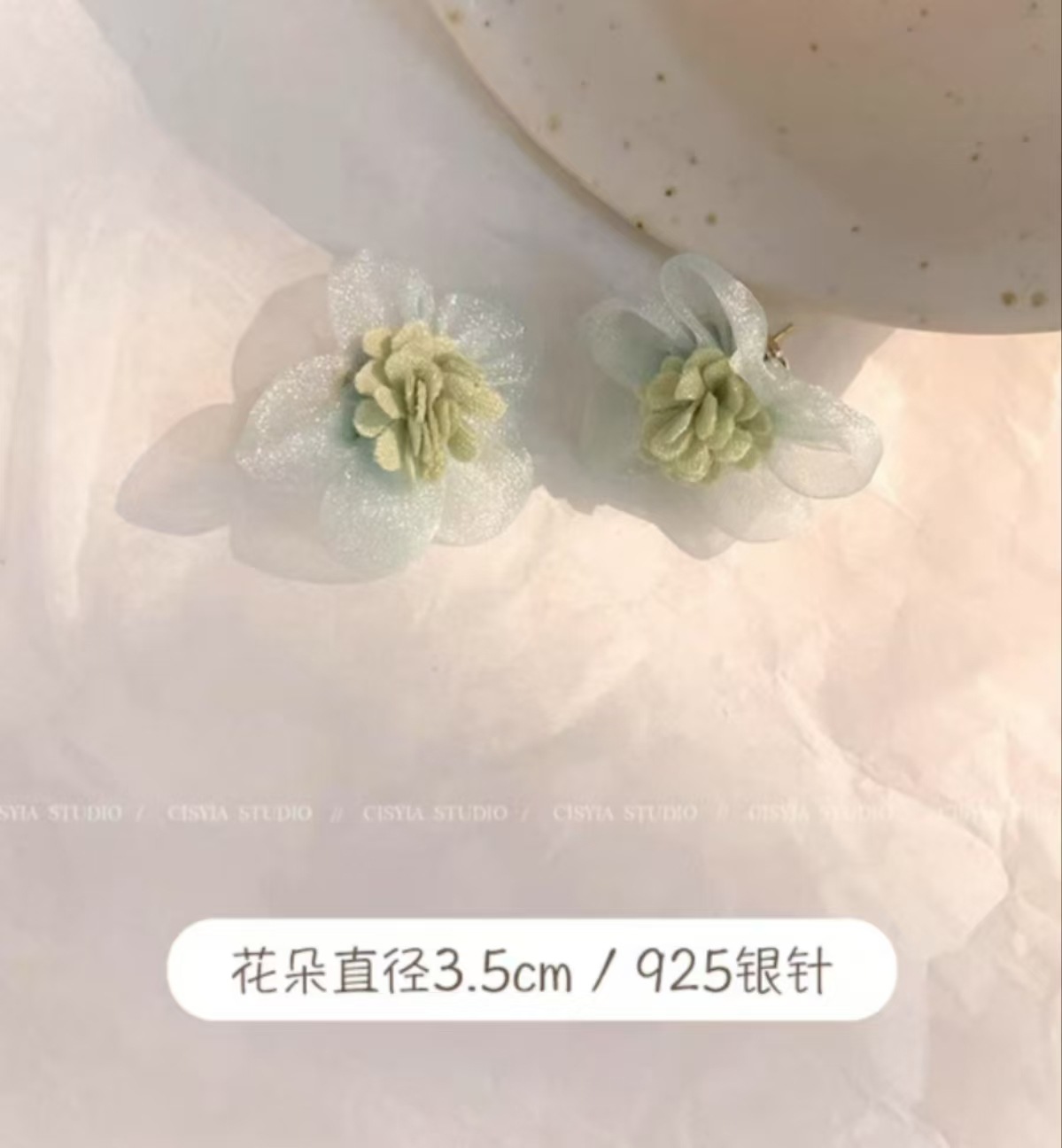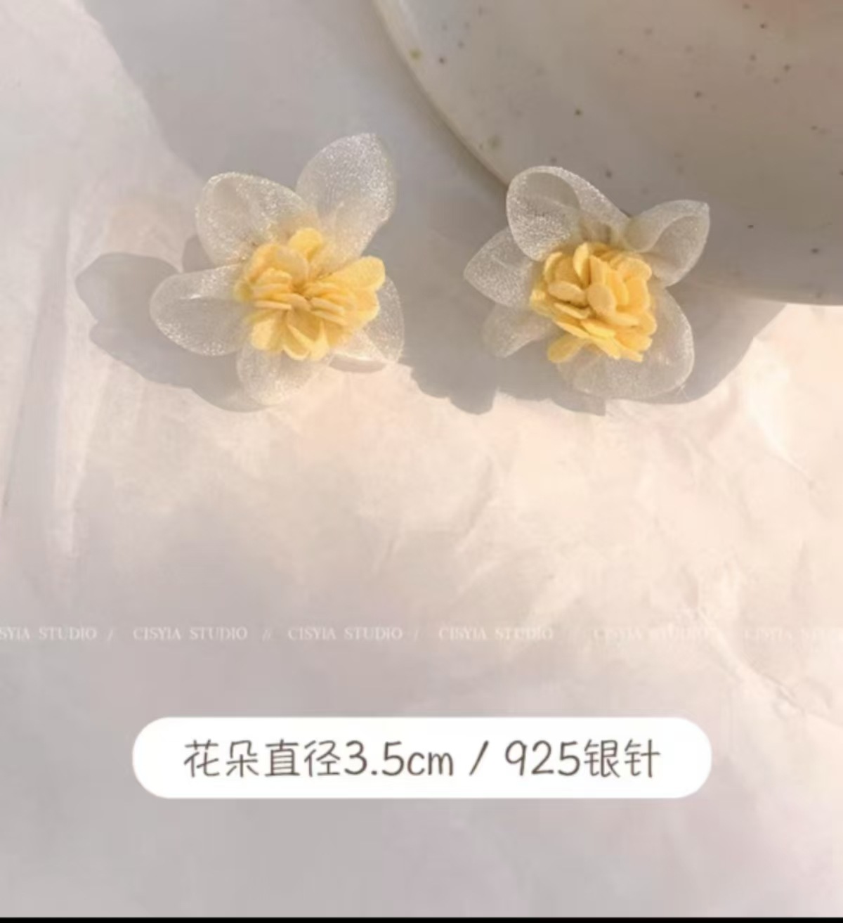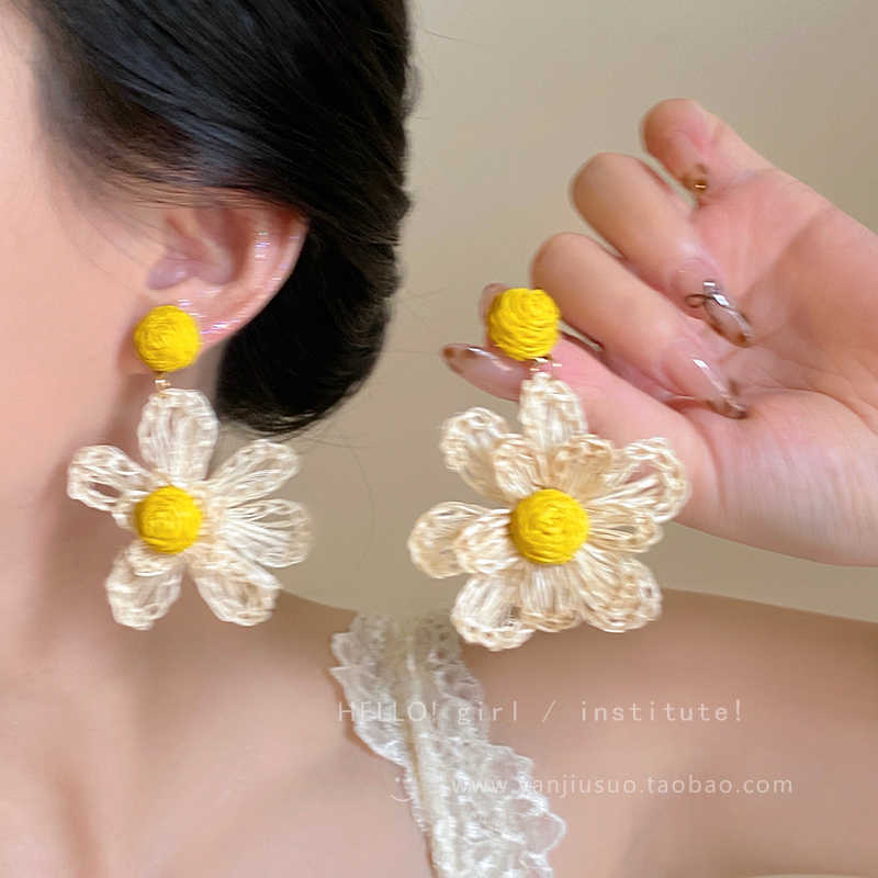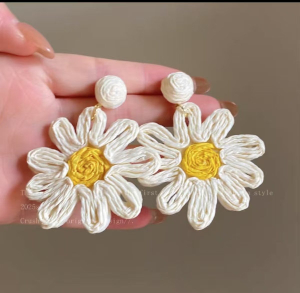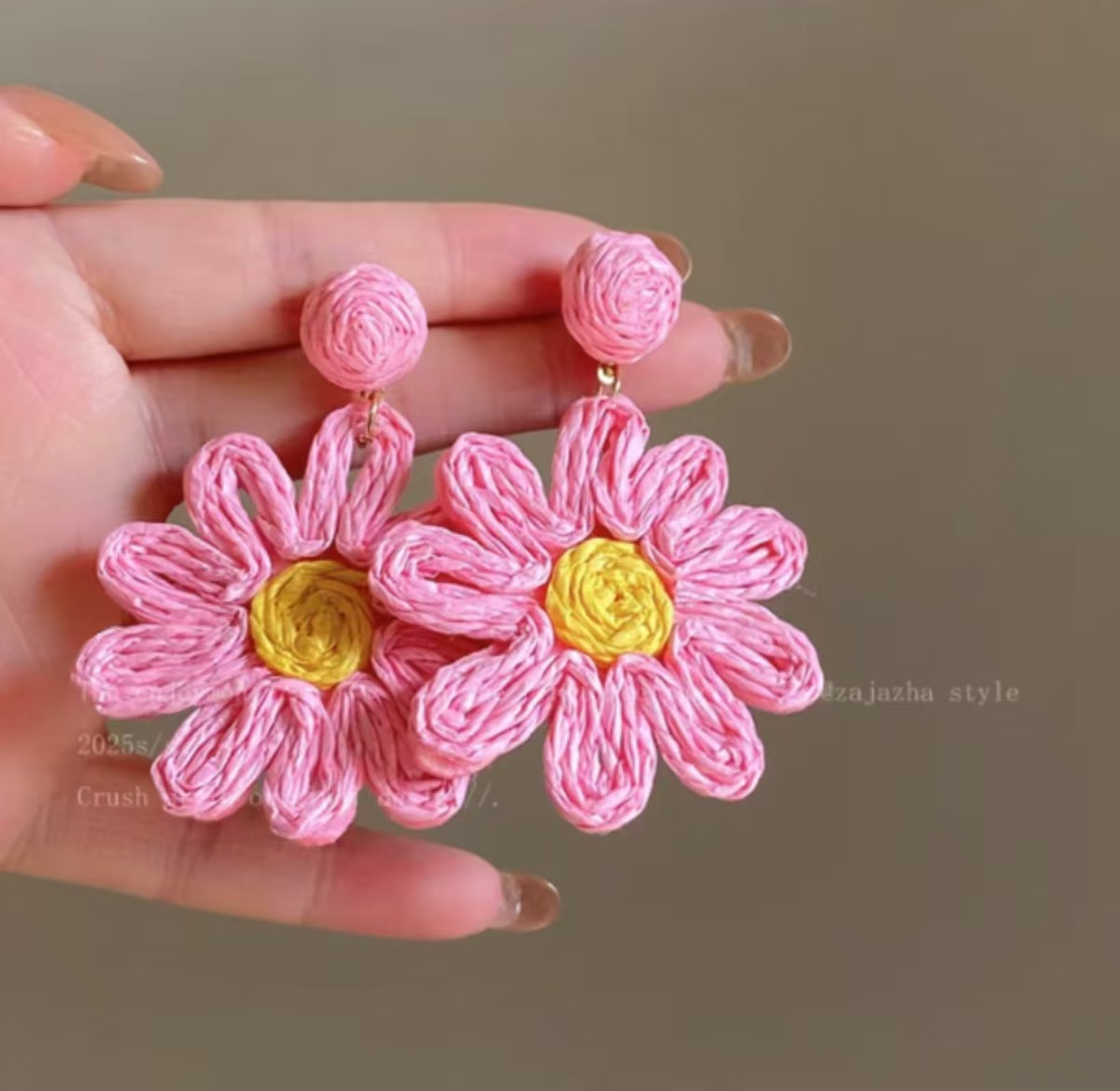 度假风花朵耳坠女2025爆款耳环高级感气质耳钉超仙风小众法式耳饰