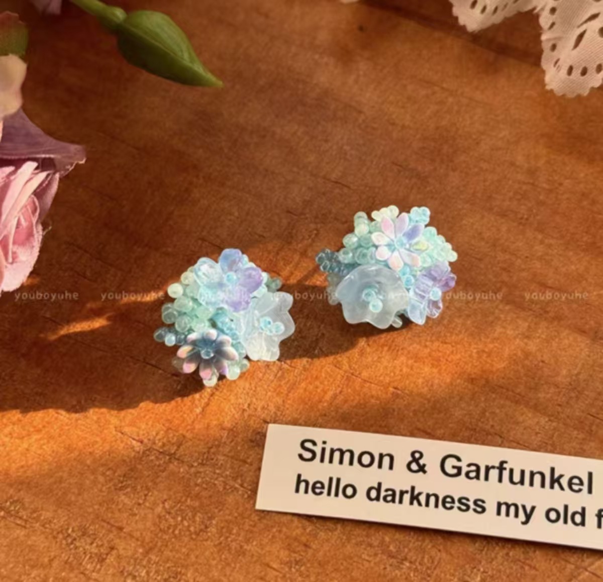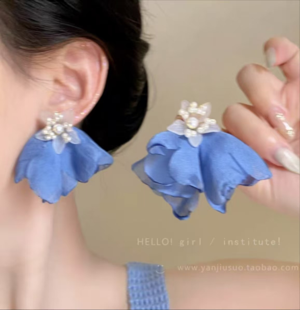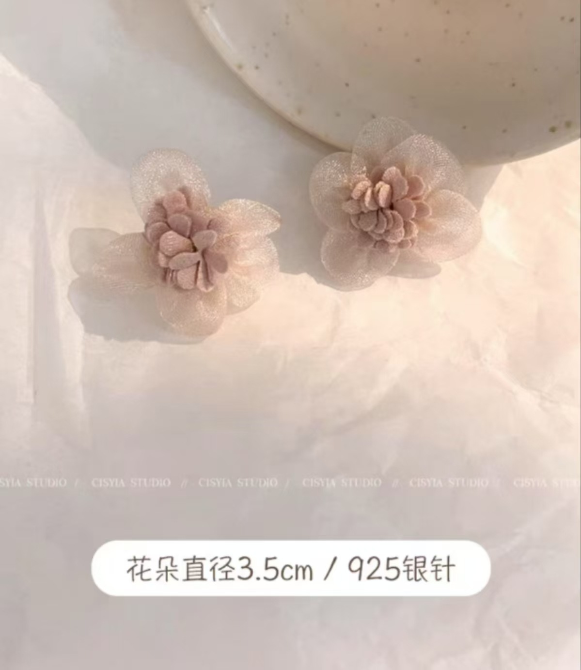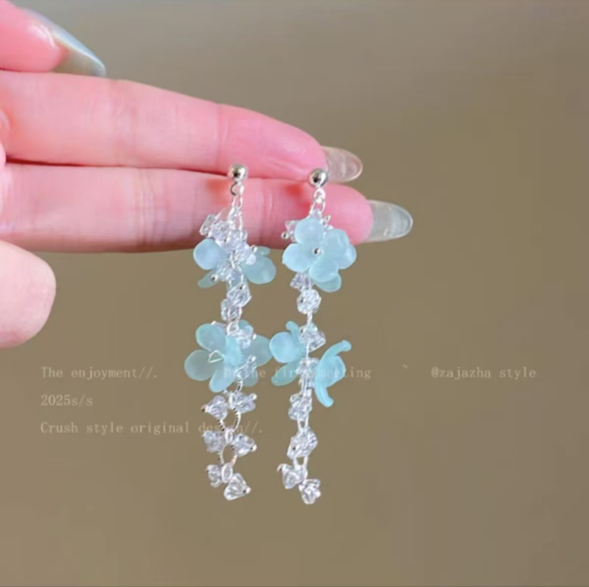 度假风花朵耳坠女2025爆款耳环高级感气质耳钉超仙风小众法式耳饰