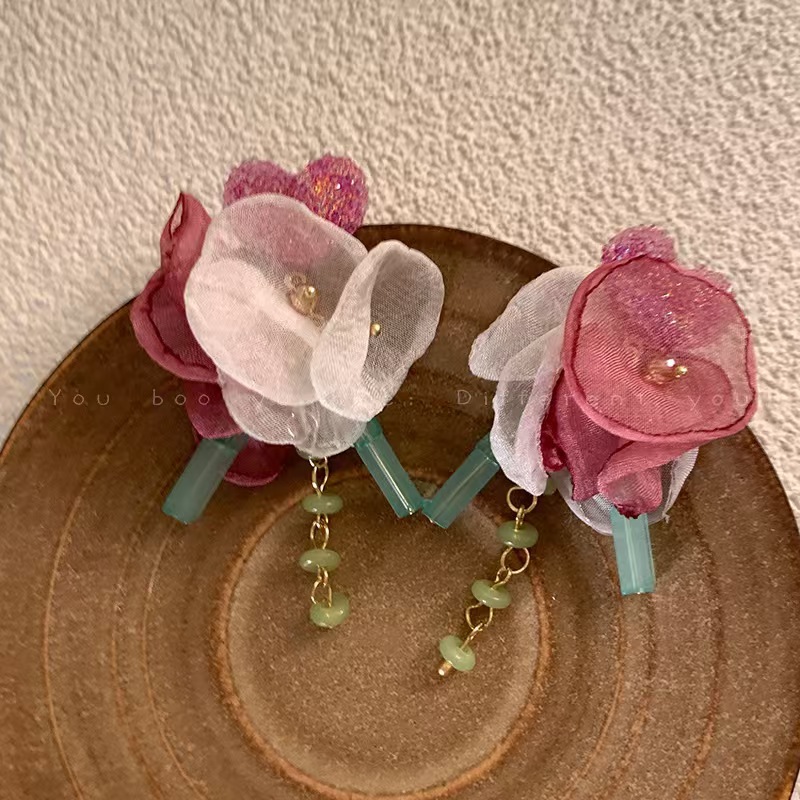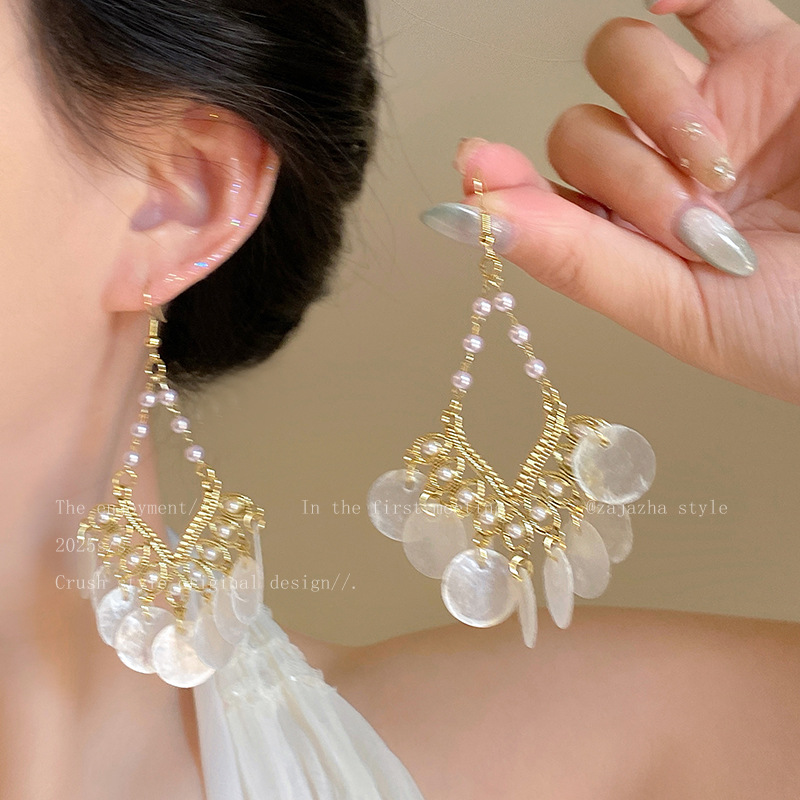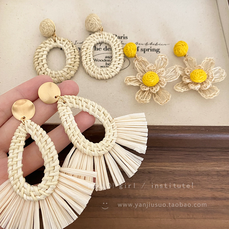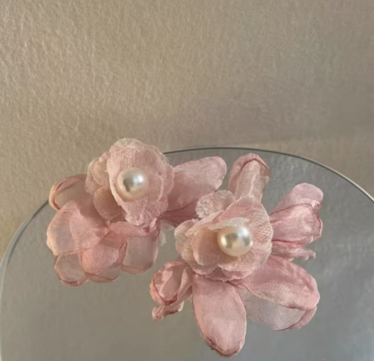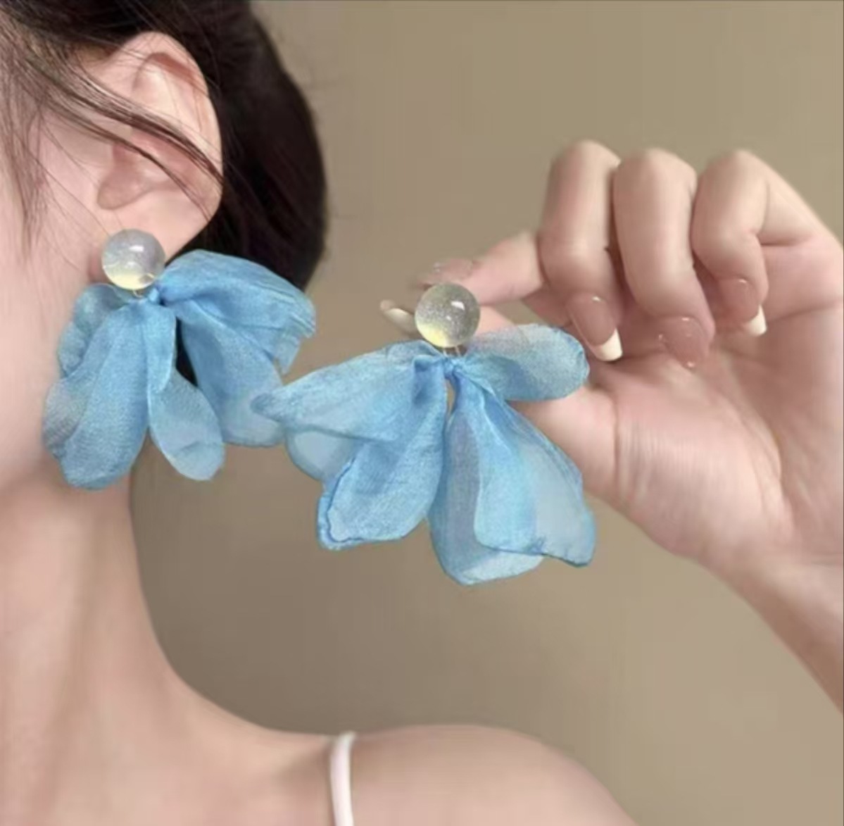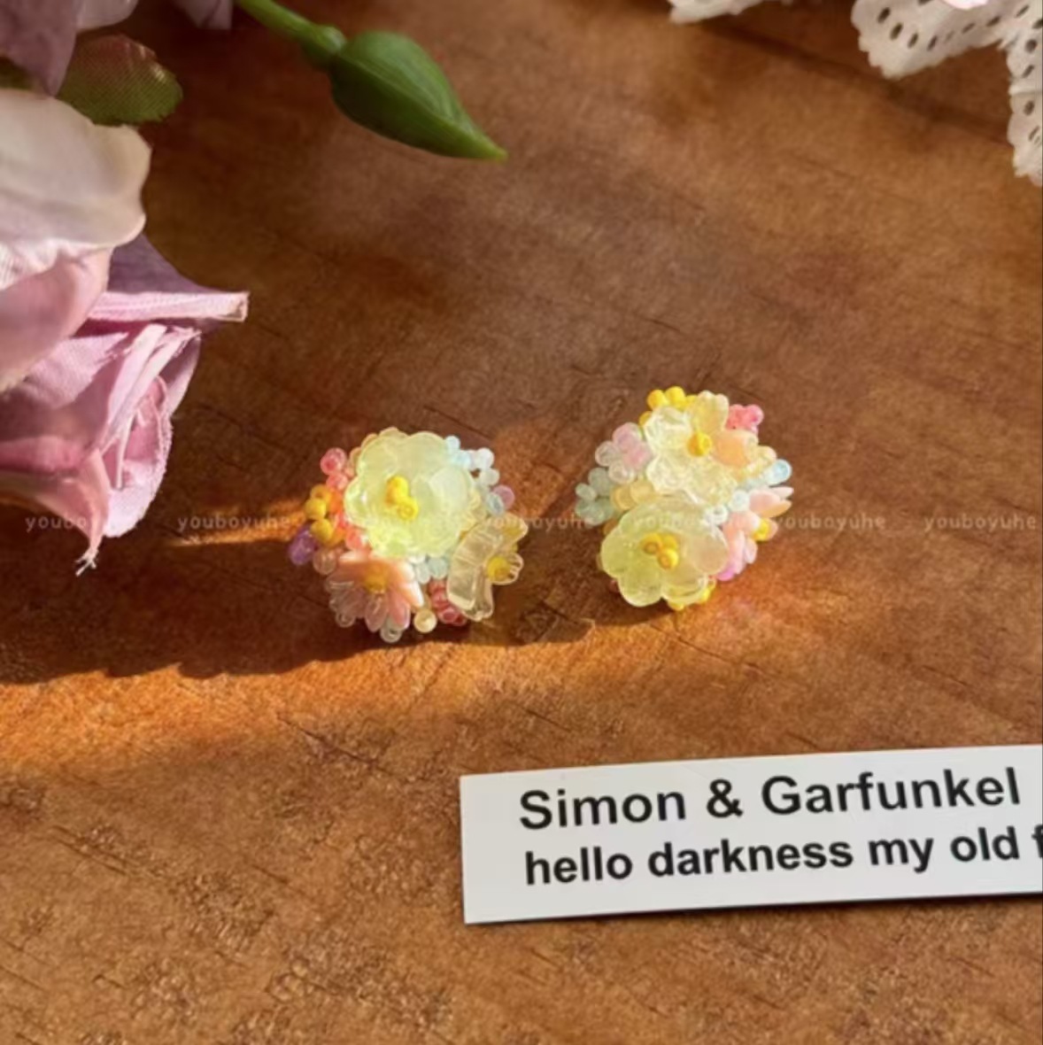 度假风花朵耳坠女2025爆款耳环高级感气质耳钉超仙风小众法式耳饰