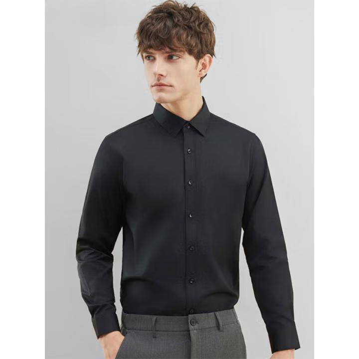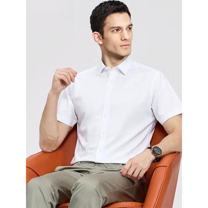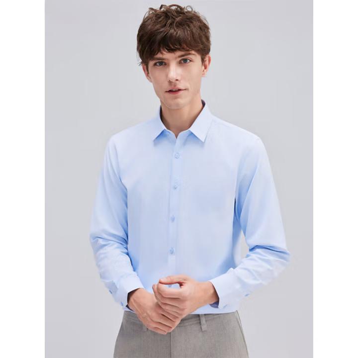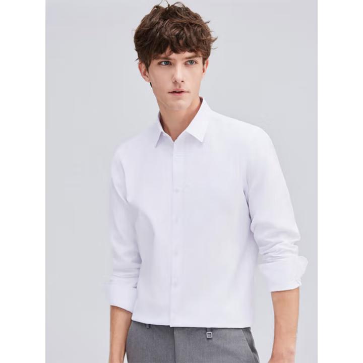 男纯色商务职业正装男士白衬衫工装外套长袖衬衣