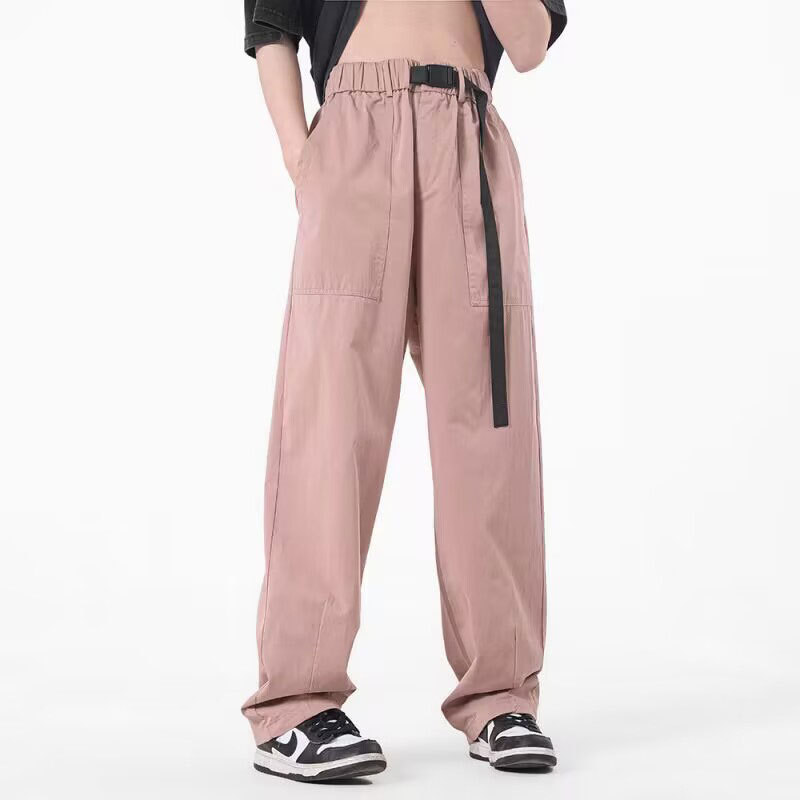 潮牌自带卡扣休闲工装裤男春秋季新款宽松裤阔腿直筒百搭裤子