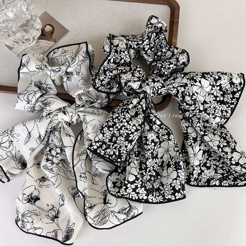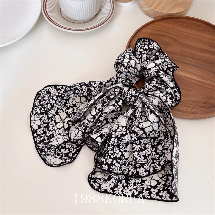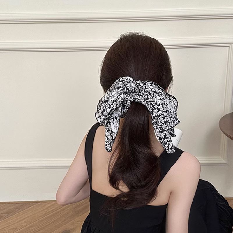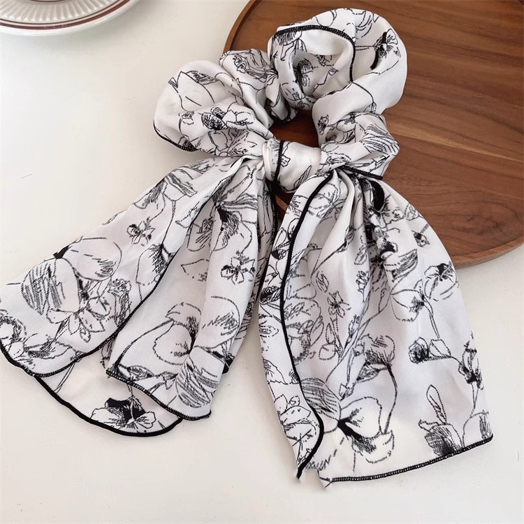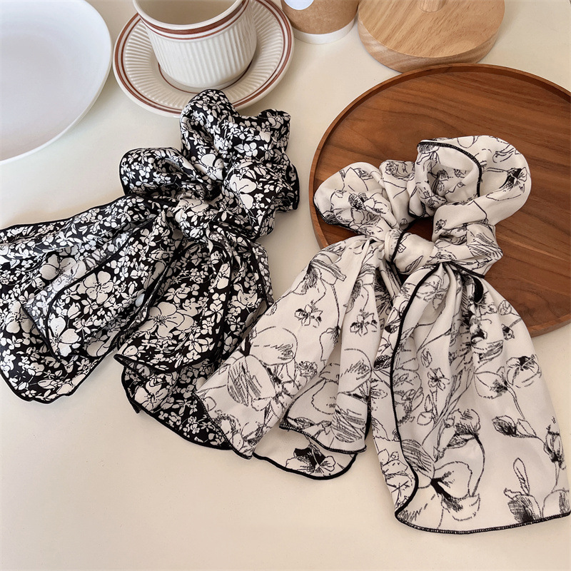 法式水墨飘带发圈年新款小众设计高级感新中式低马尾丝巾发带