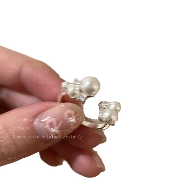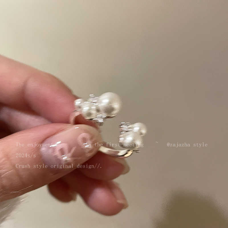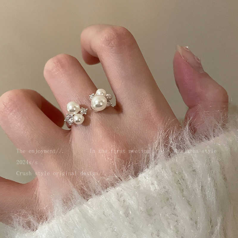 珍珠锆石开口戒指女款轻奢高级感食指戒小众设计个性夸张装饰指环