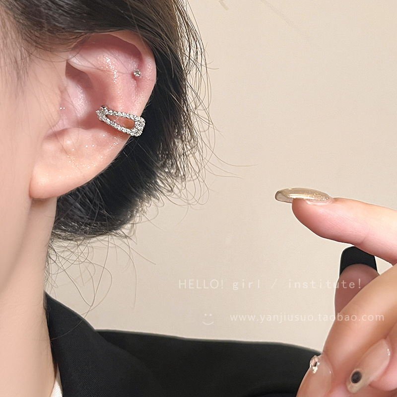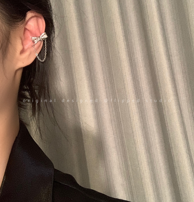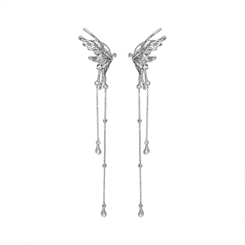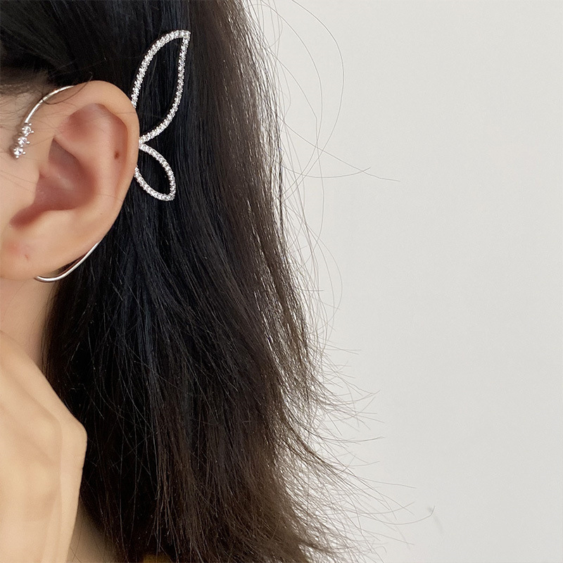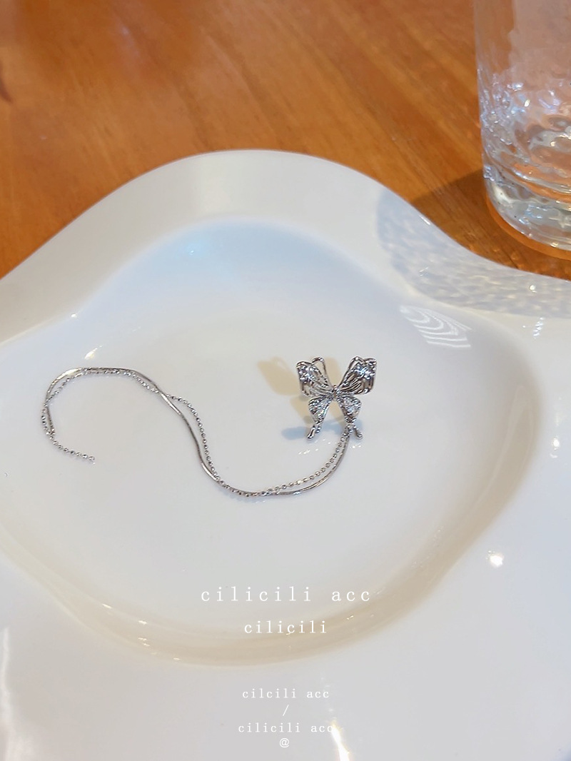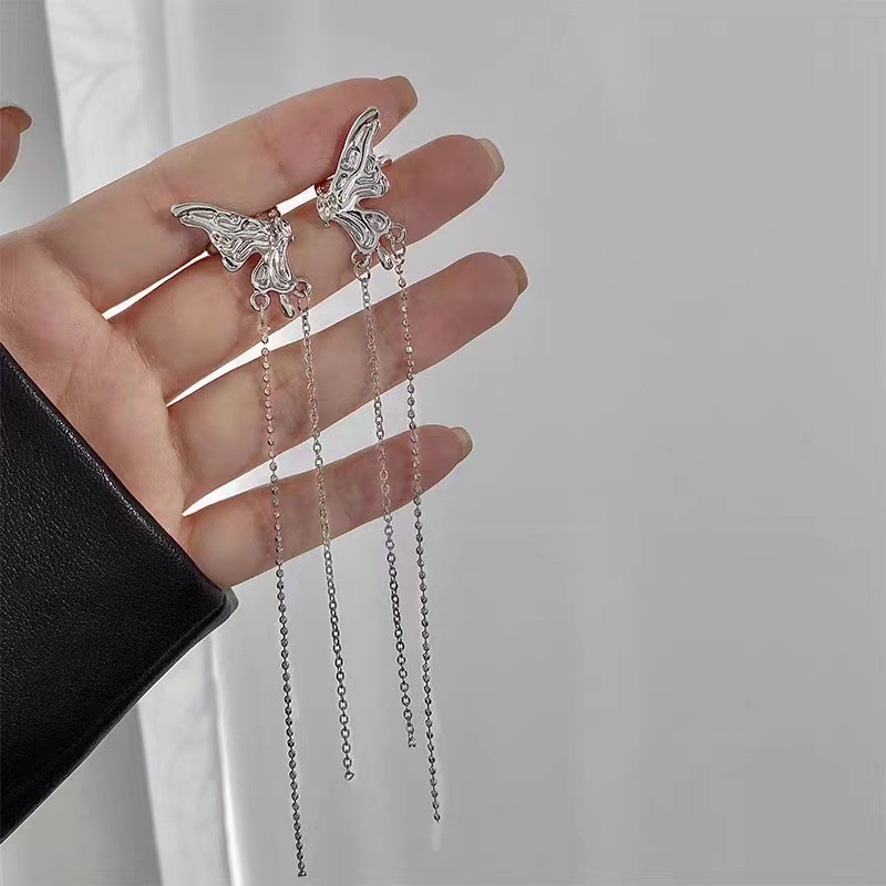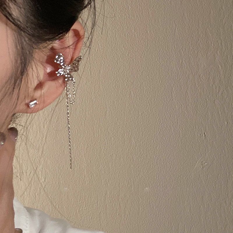 韩版无耳洞耳夹高级感冷淡风设计感耳饰女长款流苏锆石蝴蝶耳骨夹