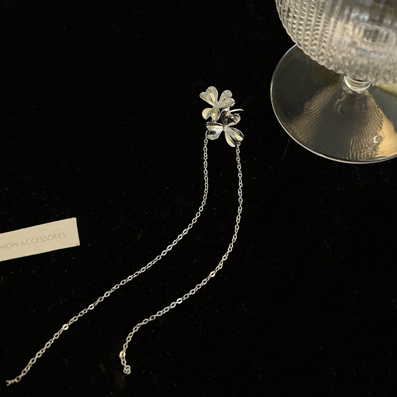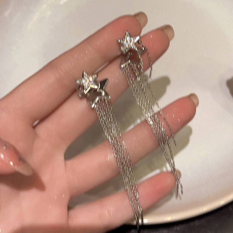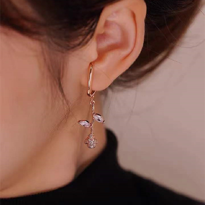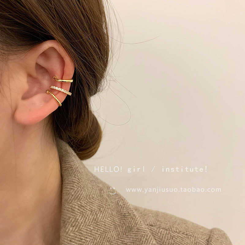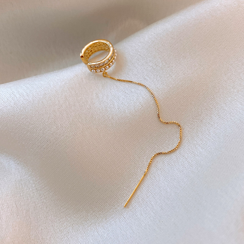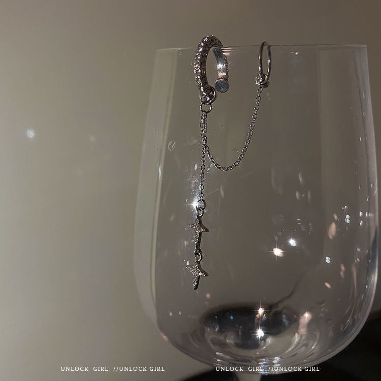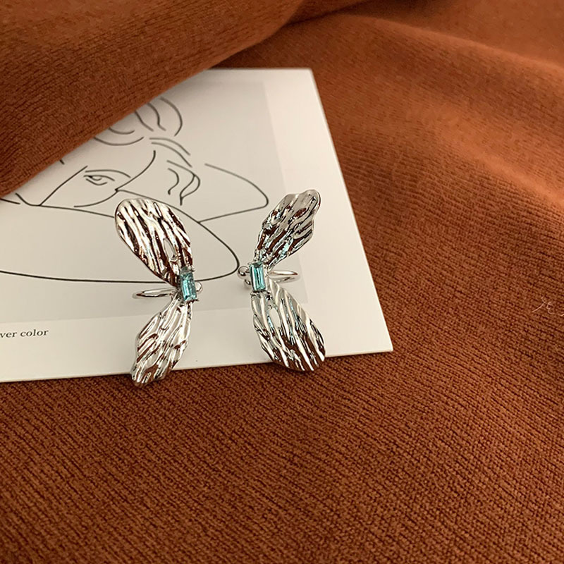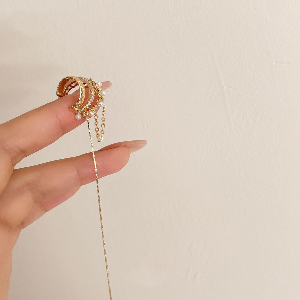 韩版无耳洞耳夹高级感冷淡风设计感耳饰女长款流苏锆石蝴蝶耳骨夹