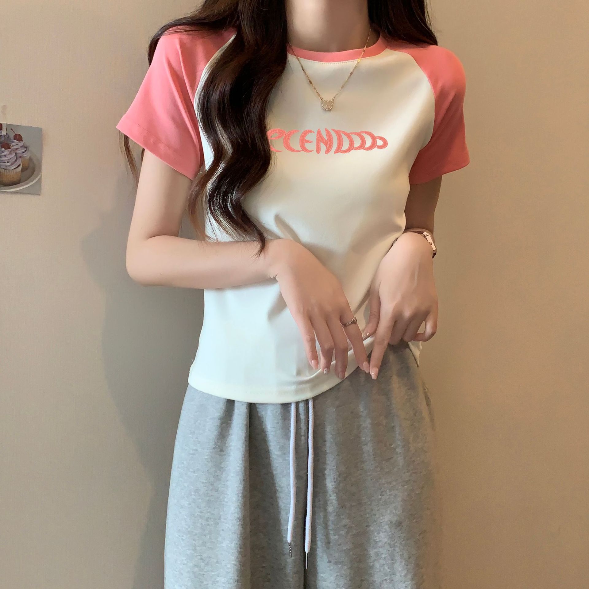 插肩袖t恤女短袖夏季设计感小众小个子修身短款上衣