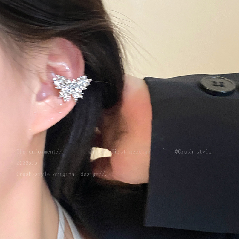 超闪锆石蝴蝶无耳洞耳夹女新款耳环设计感小众设计高级轻奢耳骨夹