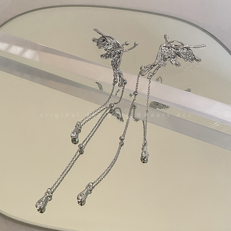 仙气飘飘~长款流苏蝴蝶耳夹无耳洞女夏小众设计感高级耳环耳骨夹