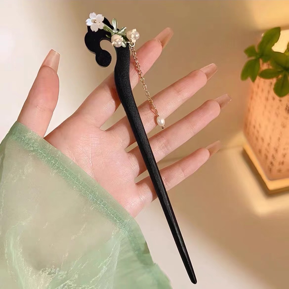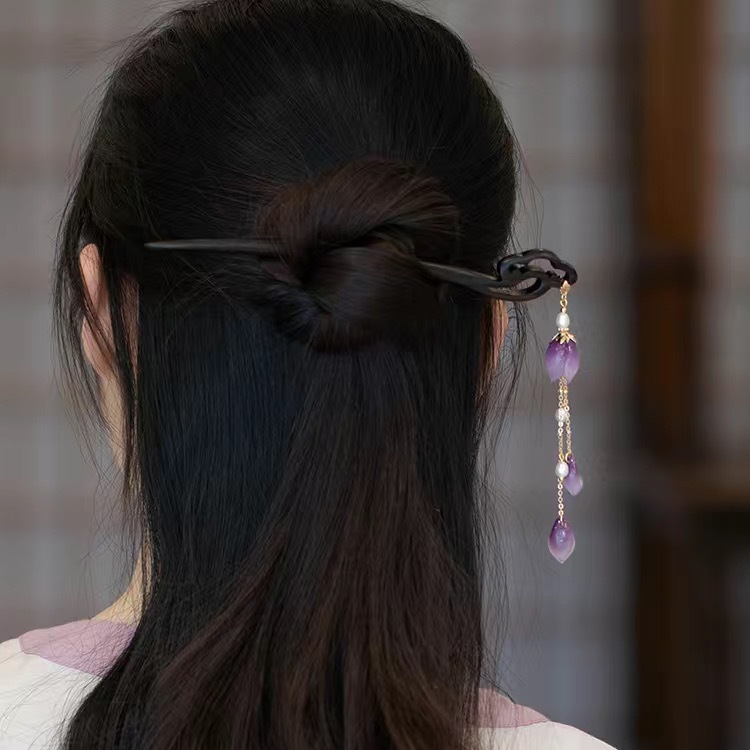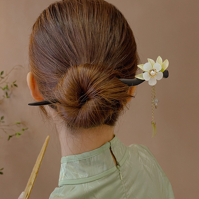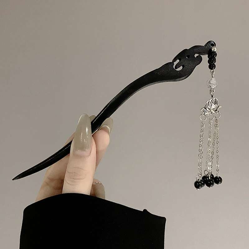 木质发簪女古风高级感新中式头饰檀木流苏簪子盘发发钗马面裙配饰