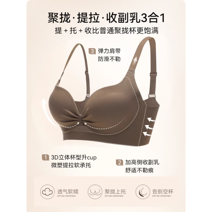 内衣女聚拢无痕一体式无钢圈性感内衣调整型收副乳防下垂文胸罩