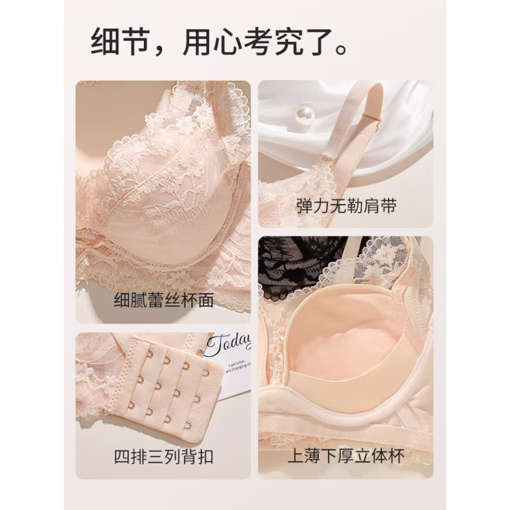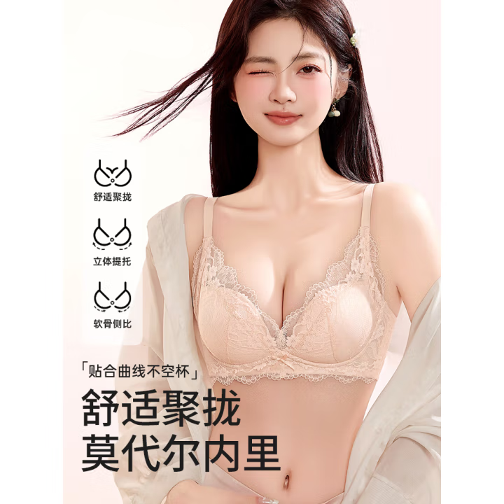 内衣女无钢圈文胸聚拢莫代尔里料舒适性感纯欲蕾丝胸罩