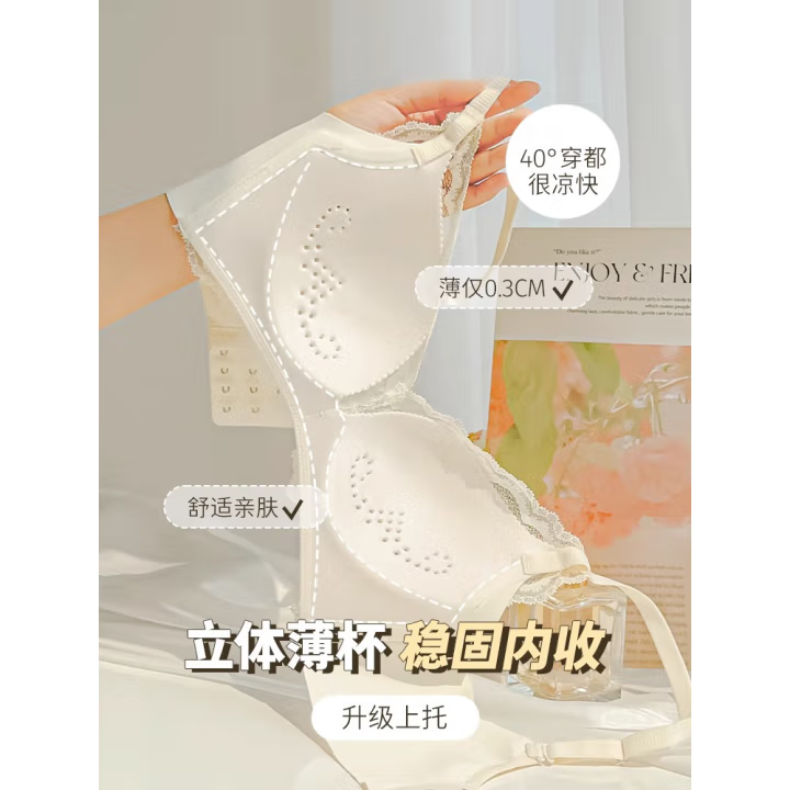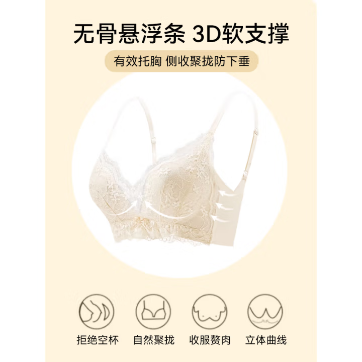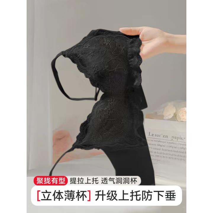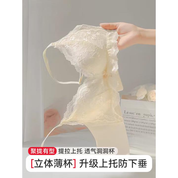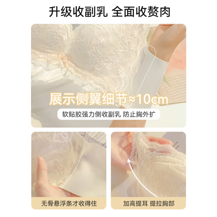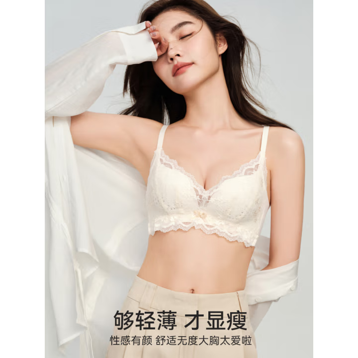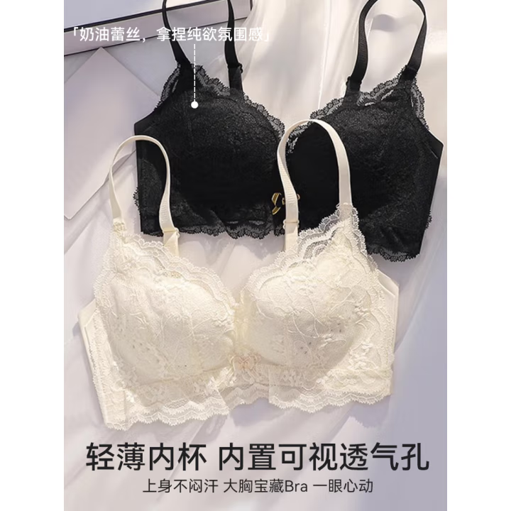 内衣女大胸显小薄款聚拢收副乳调整型文胸罩性感蕾丝无钢圈内衣