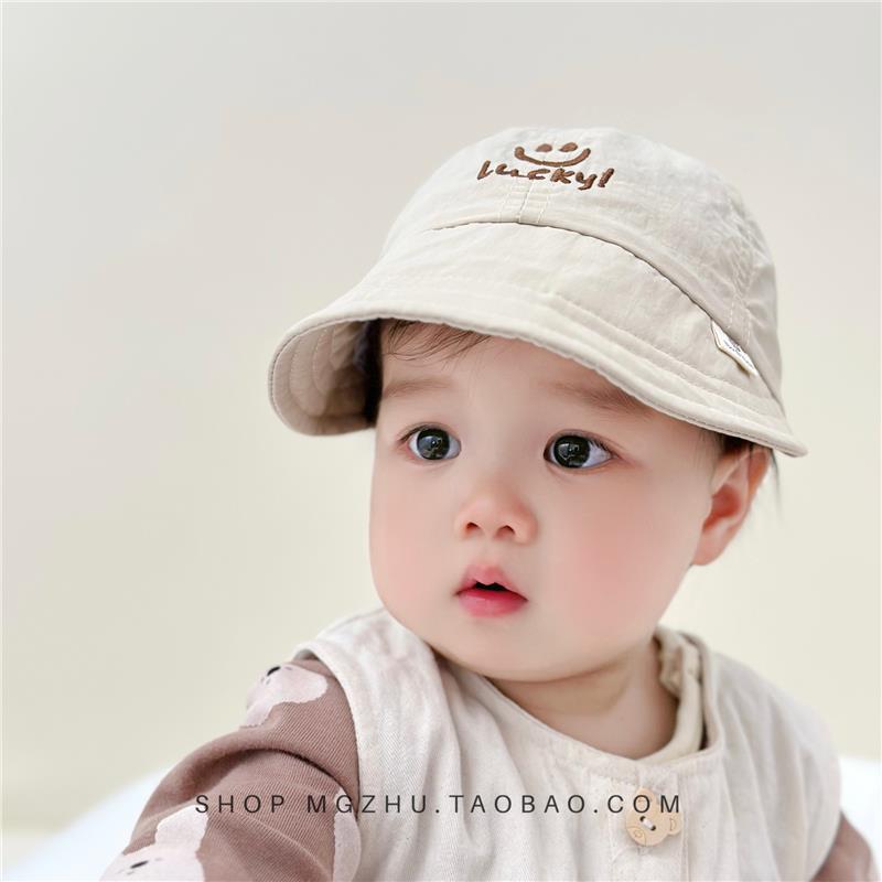 婴儿帽子宝宝遮阳帽夏季薄款速干帽笑脸刺绣鸭舌帽遮脸防晒太阳帽