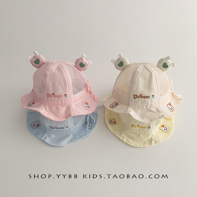婴儿帽子夏季薄款透气网眼遮阳防晒渔夫帽男女宝宝小月龄太阳盆帽