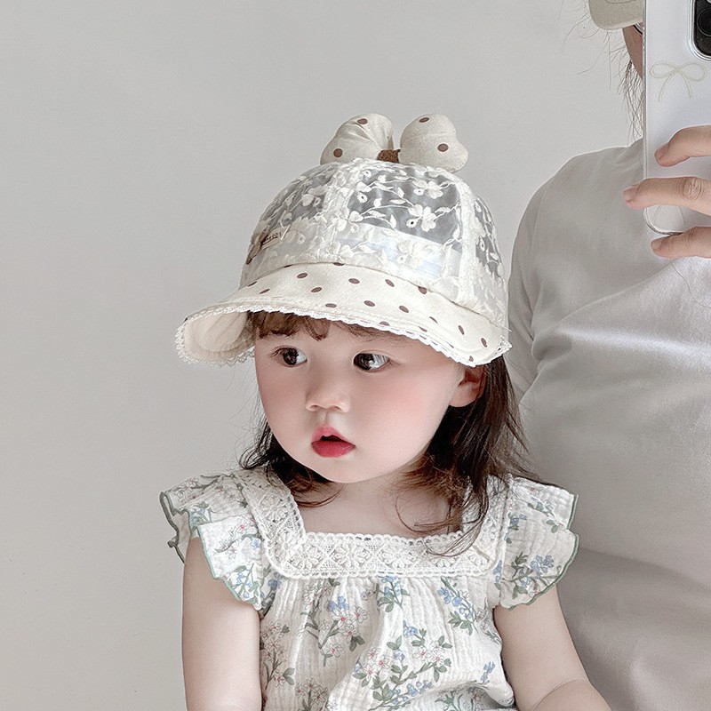 宝宝帽子春夏款蕾丝鸭舌帽婴幼儿大檐防晒帽韩版洋气遮阳帽公主帽