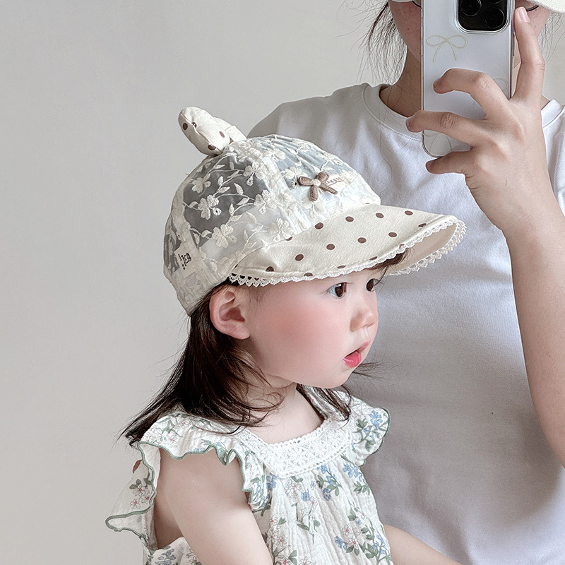 奕波点蕾丝大檐鸭舌米+6个月-3岁(头围45-51cm)+均码