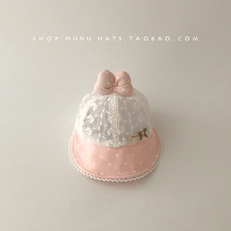 奕波点蕾丝大檐鸭舌粉+6个月-3岁(头围45-51cm)+均码
