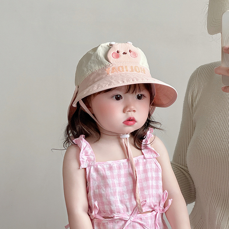 宝宝帽子春夏薄款速干透气渔夫帽儿童卡通出游大檐防晒帽遮阳帽韩