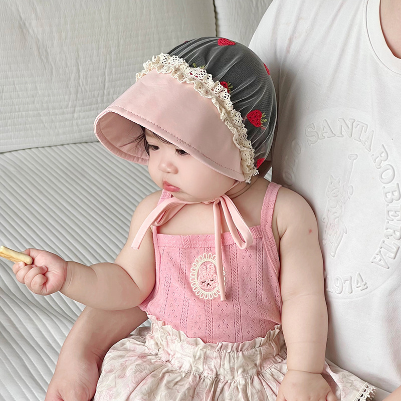 婴儿帽子夏季薄款透气网纱宫廷帽宝宝防晒遮阳小月龄护囱门胎帽韩