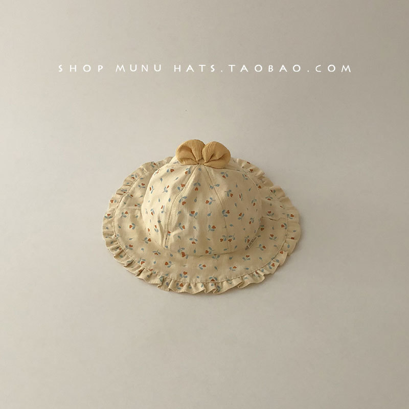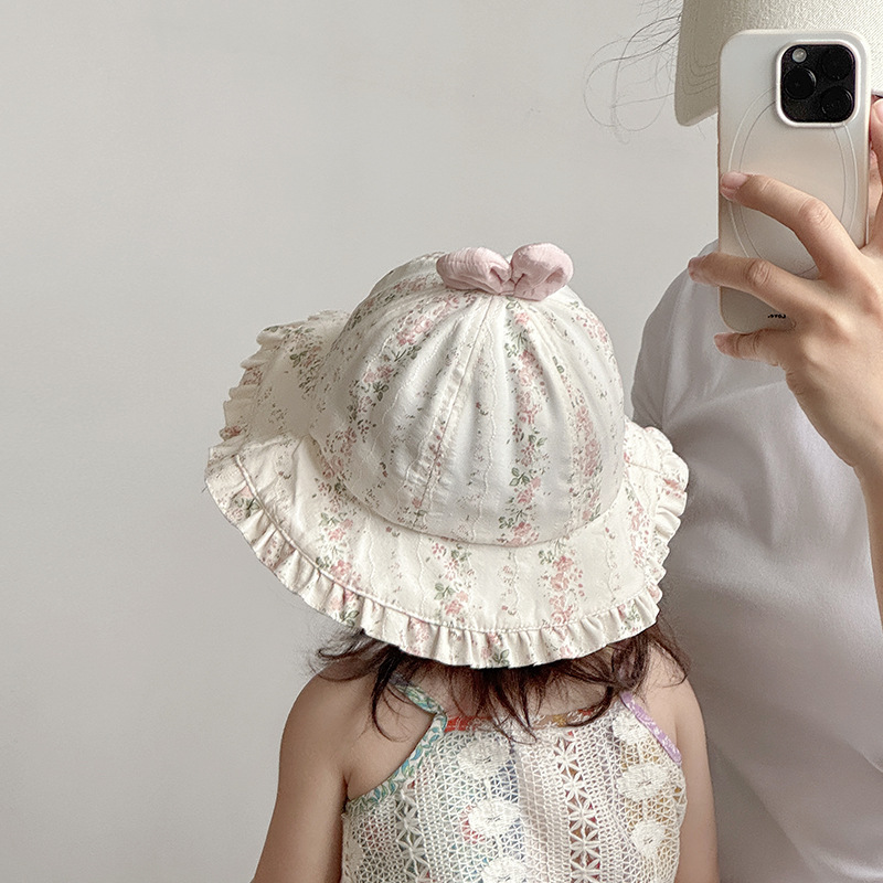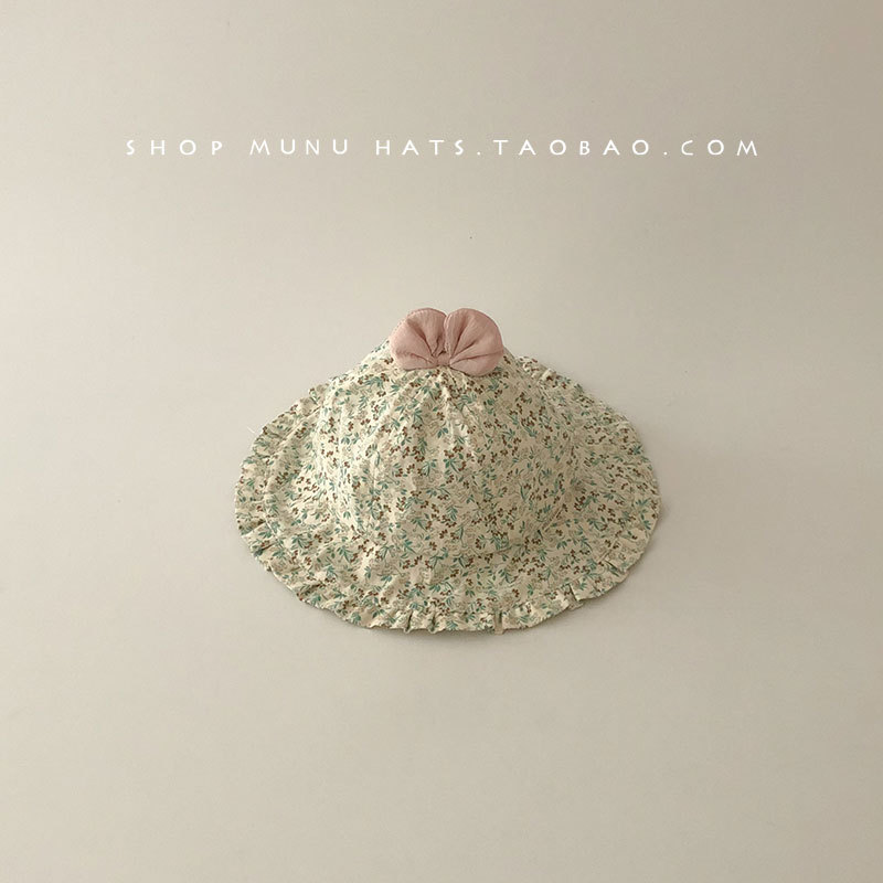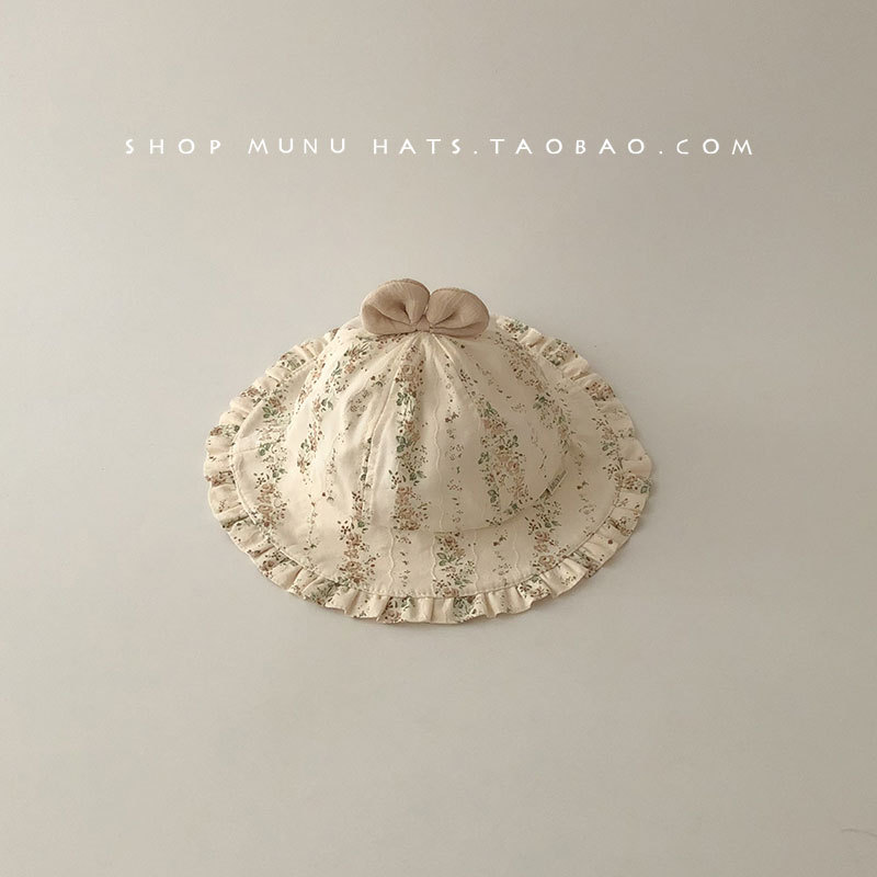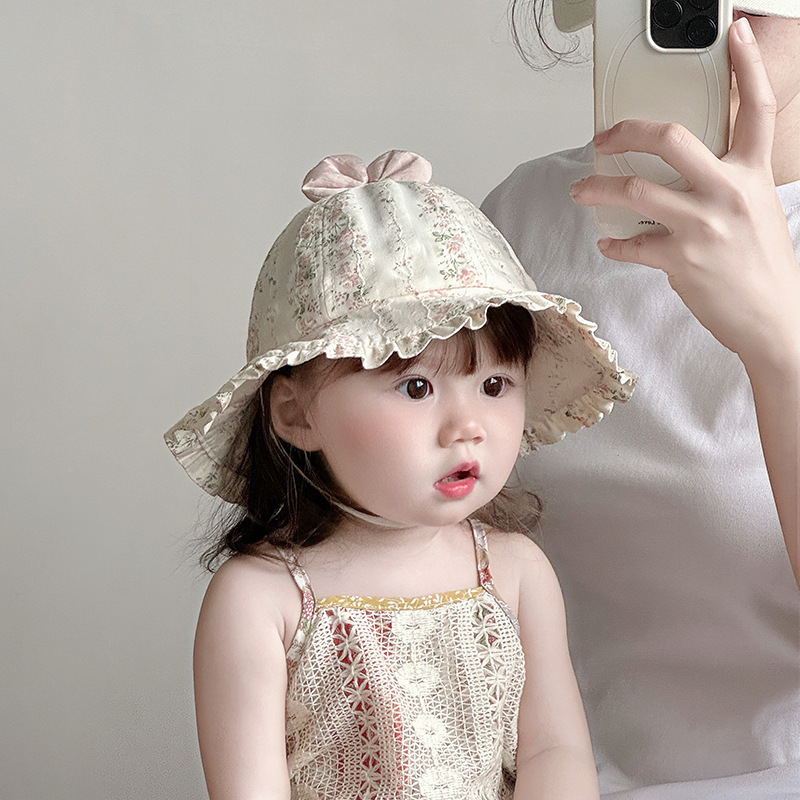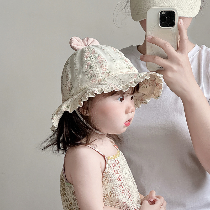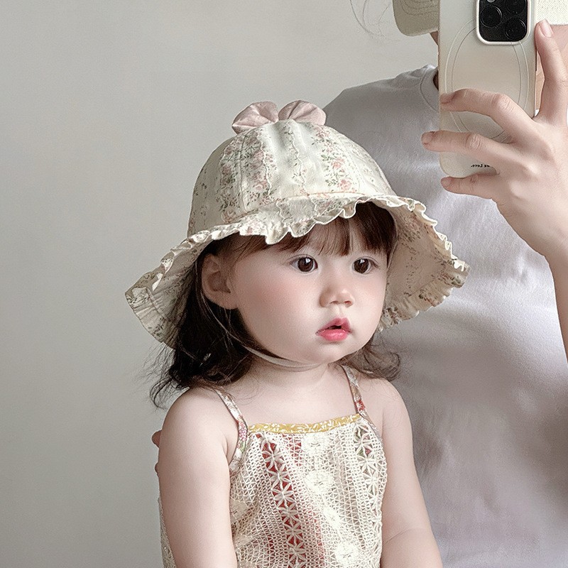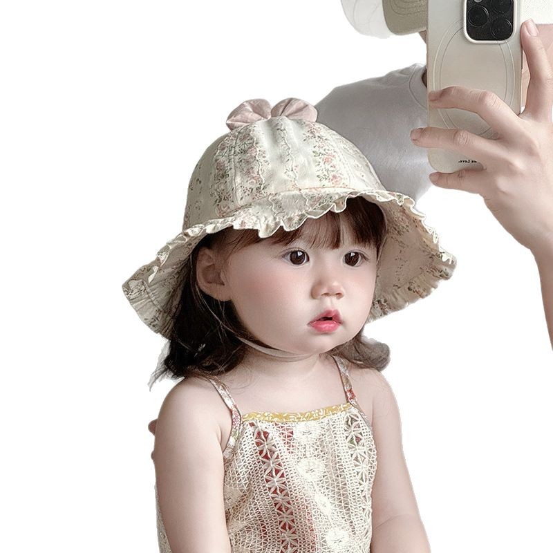 宝宝帽子春夏薄款渔夫帽韩版洋气碎花大檐遮阳帽婴幼儿出游防晒帽