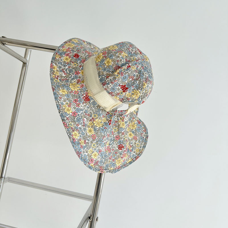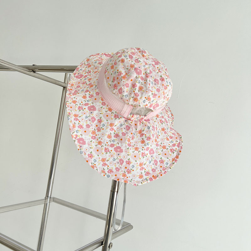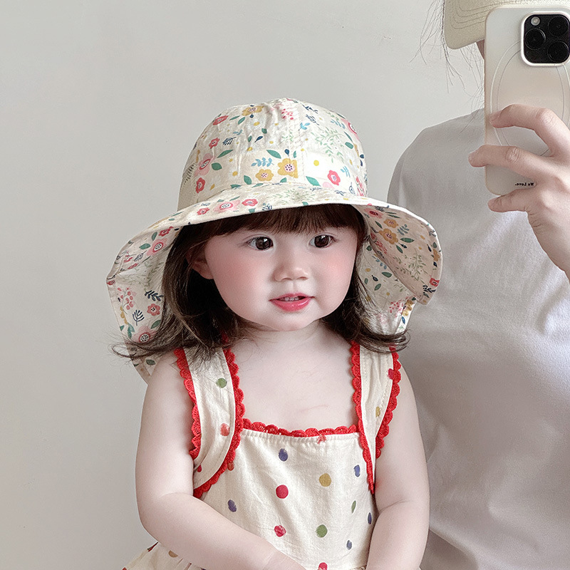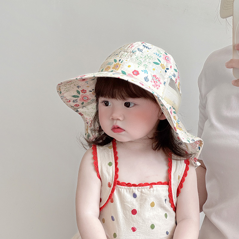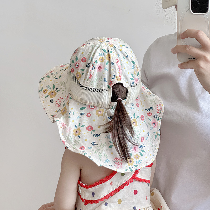 韩系女童帽子夏季薄款透气网眼遮阳防晒大帽檐披肩帽女宝宝渔夫帽