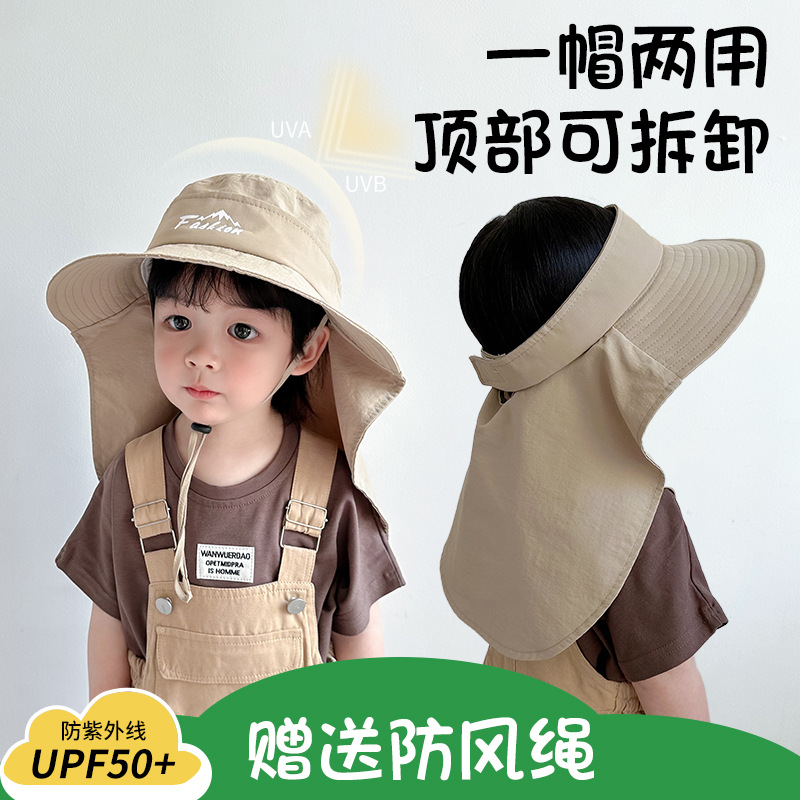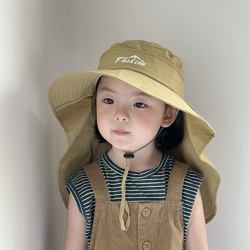 儿童帽子春夏款大檐防晒帽带披肩护脖遮阳帽宝宝户外防紫外线帽潮