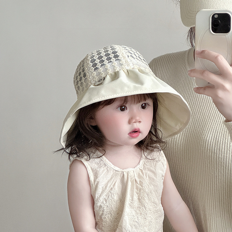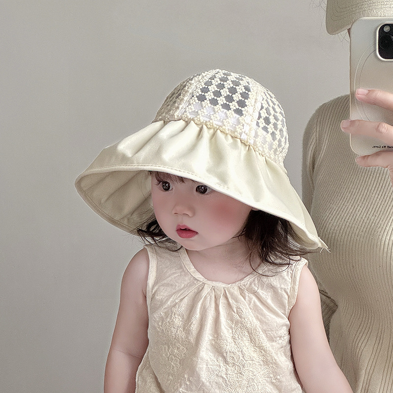 宝宝帽子春夏款透气网眼渔夫帽儿童出游大檐防晒帽遮阳帽太阳帽韩
