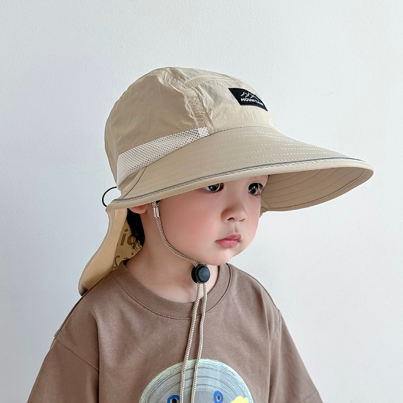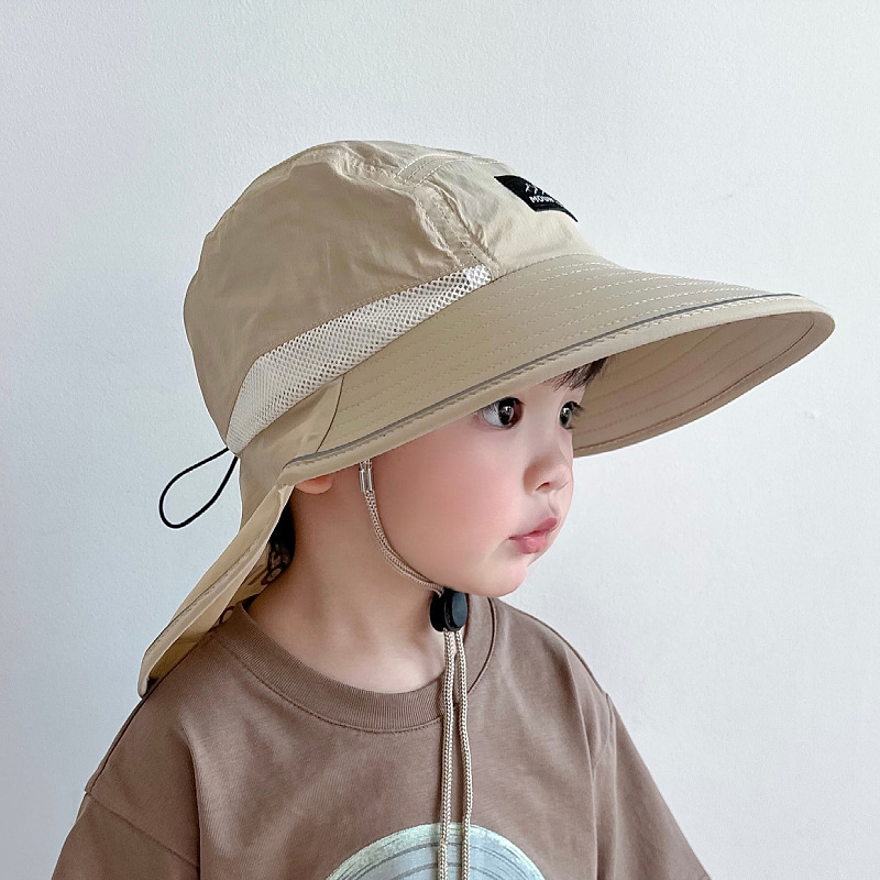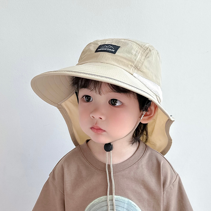 儿童帽子夏季薄款男女宝宝遮阳防晒披肩帽速干户外渔夫帽防紫外线