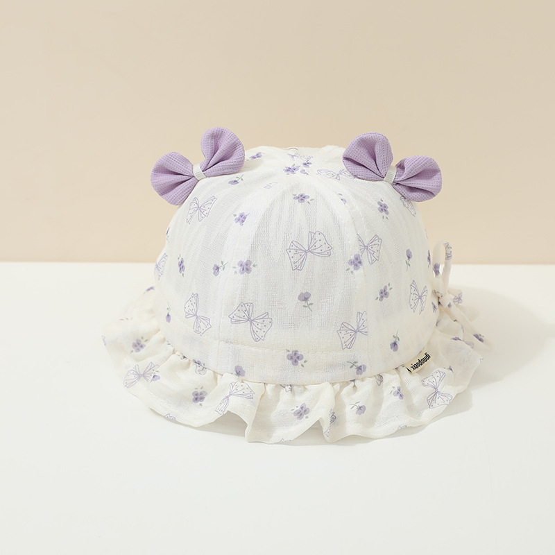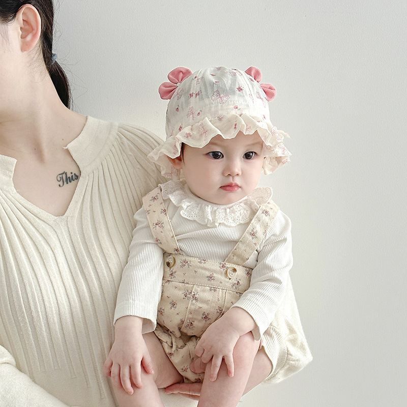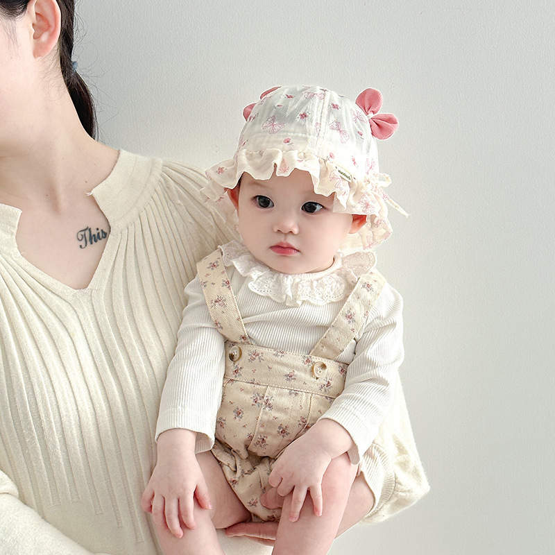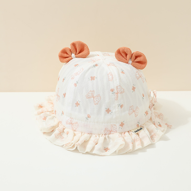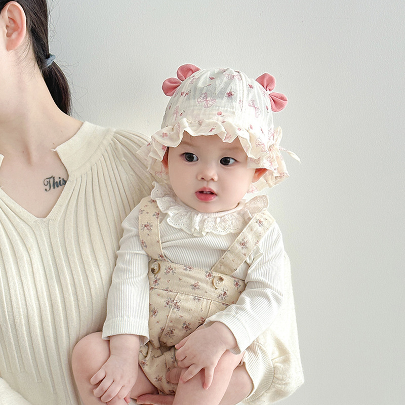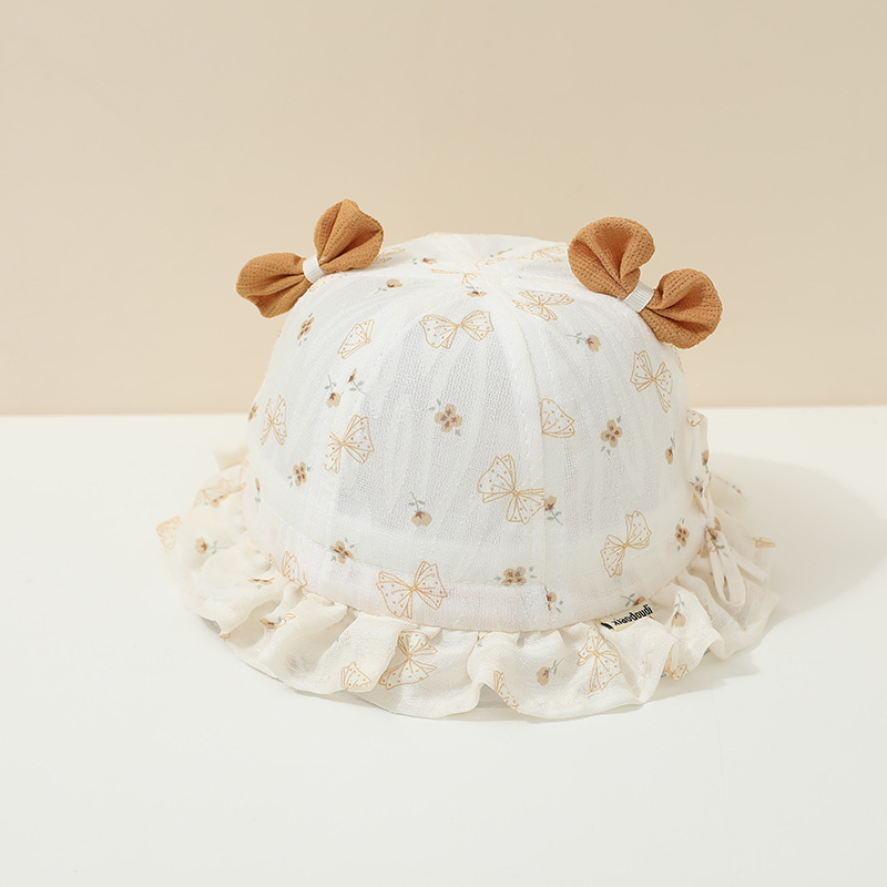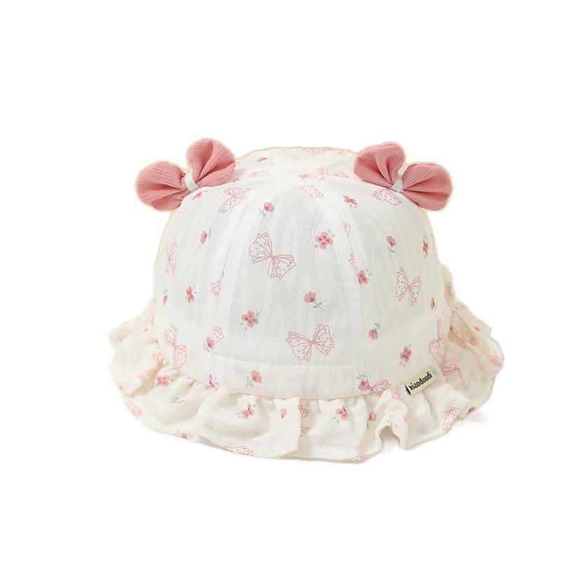 婴儿帽子春夏薄款遮阳防晒松紧渔夫帽女宝宝甜美蝴蝶结小月龄盆帽